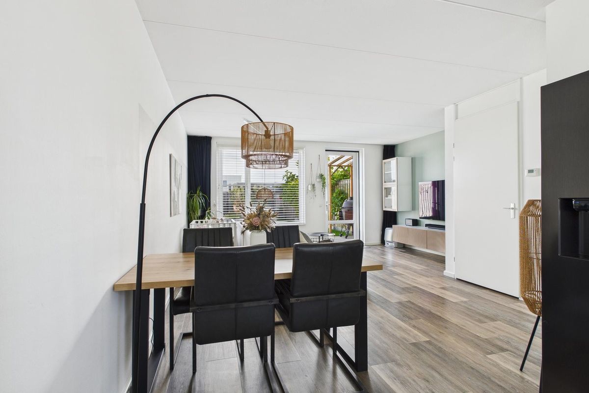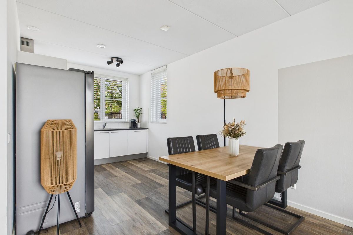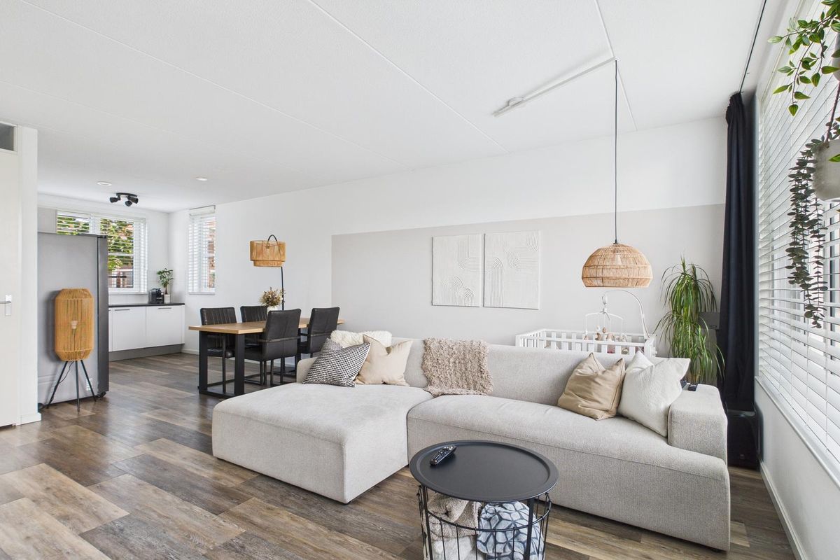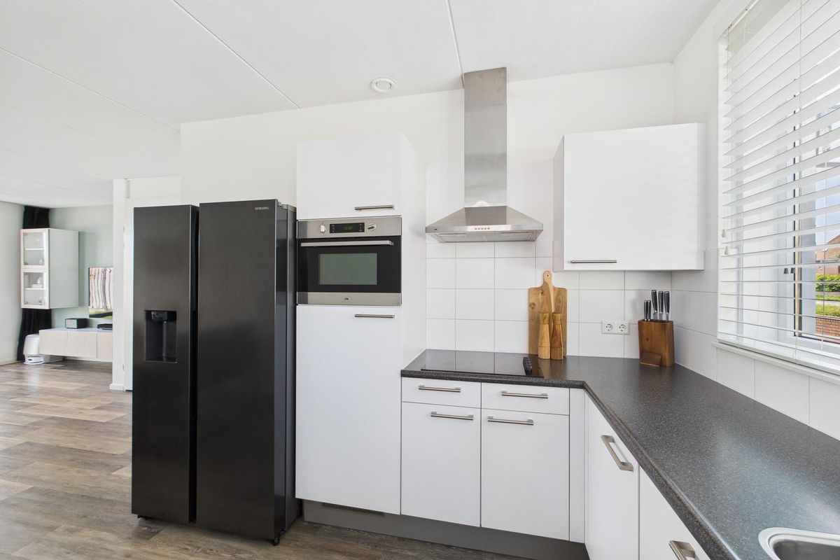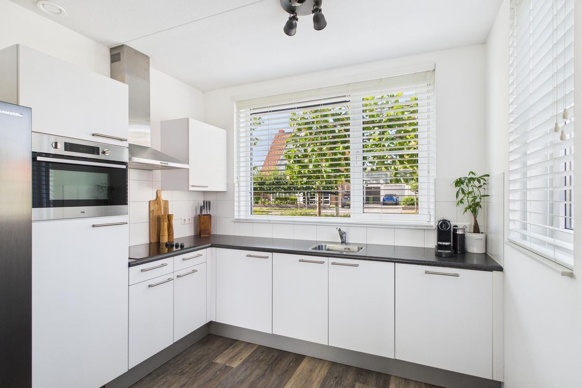 De royale woonkamer met open keuken is een heerlijke plek om te genieten. Dankzij de vele ramen valt er volop daglicht naar binnen en vanuit de woonkamer heb je leuk zicht op de groene achtertuin. De moderne keuken is van alle gemakken voorzien: inbouwapparatuur zoals een vaatwasser, 4-pits keramische kookplaat, combimagnetron en afzuigkap. Dat maakt koken iedere dag comfortabel.