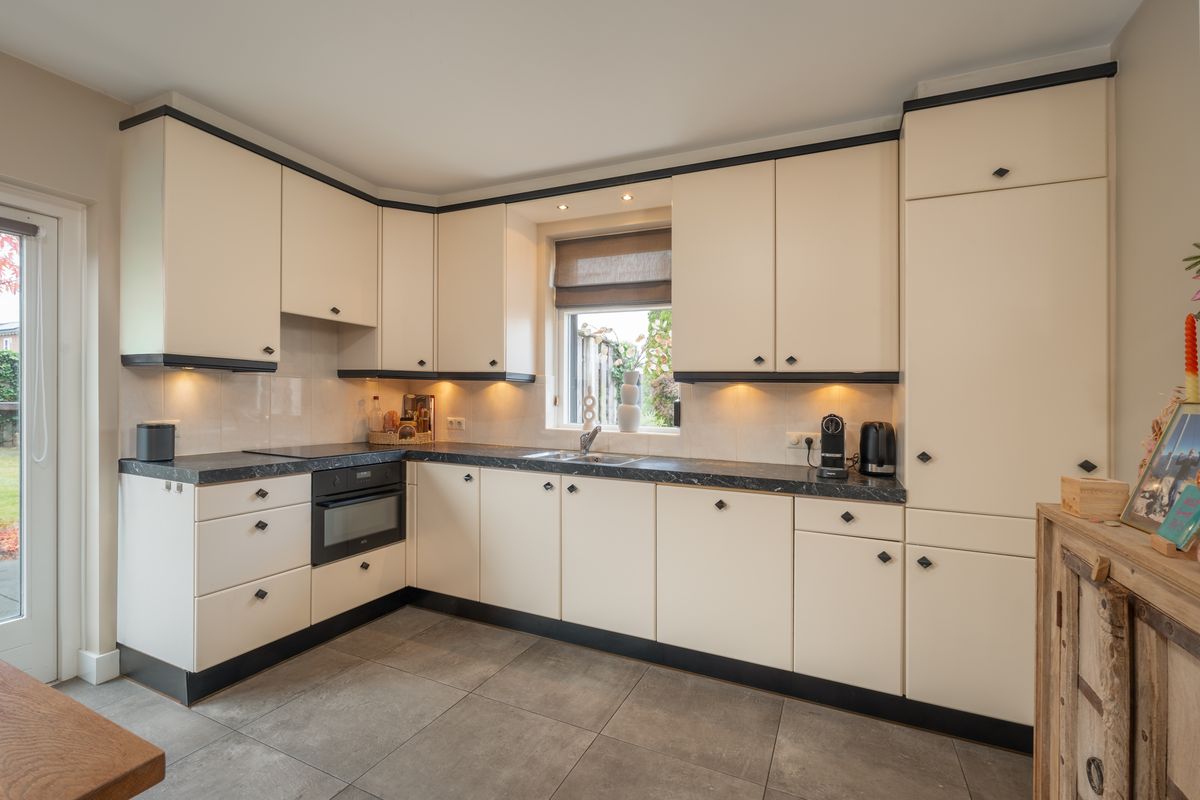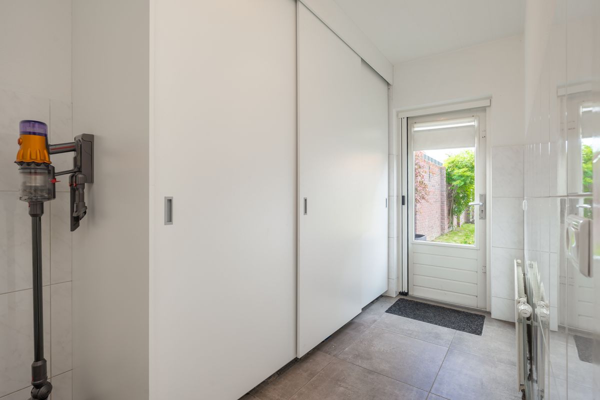 - Bijkeuken met vaste kastenwand, witgoedaansluitingen en CV-installatie;