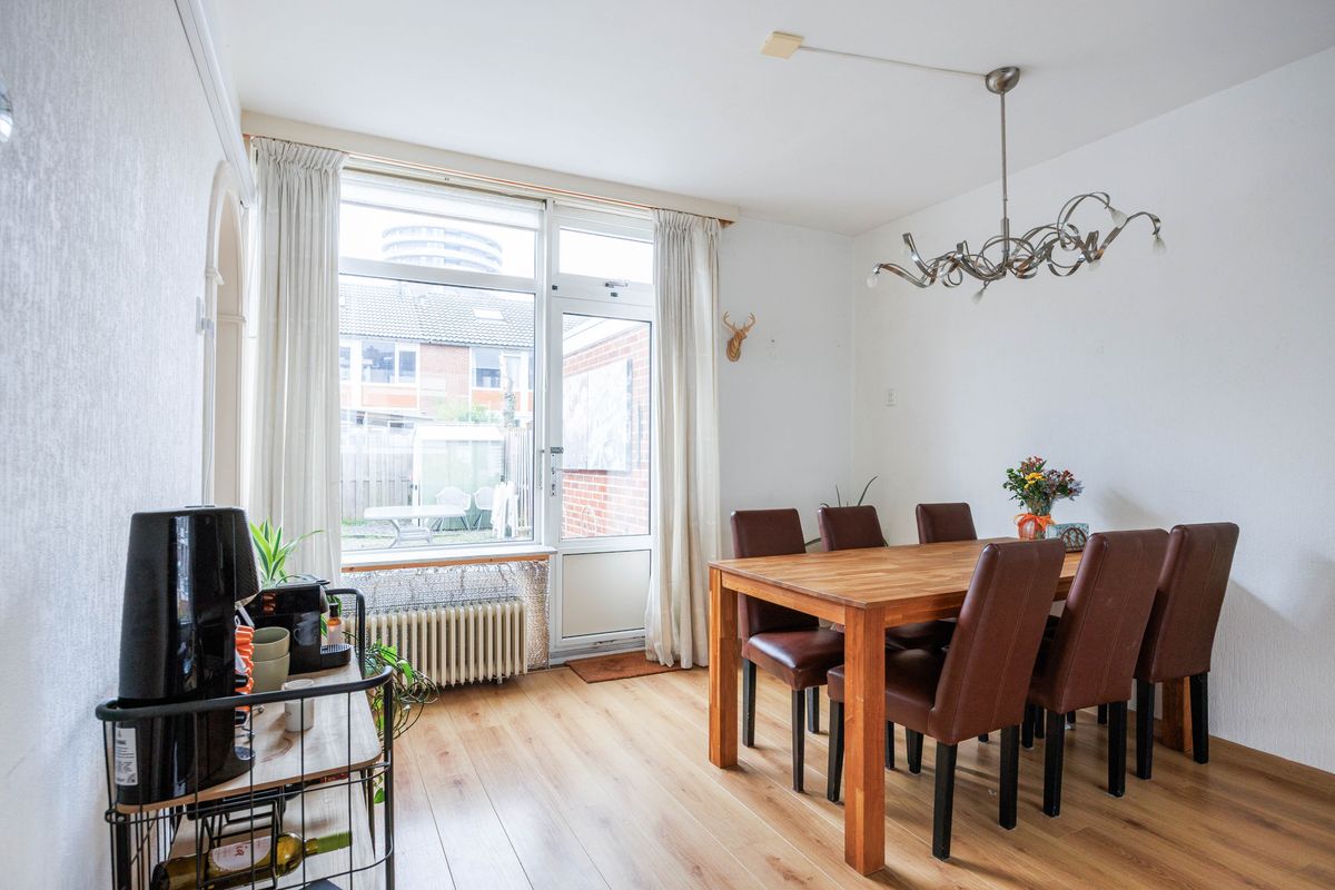 Aan de voorzijde is een pleinachtig terrasje en achter de woning is de tuin met terras; ook bereikbaar vanuit de woonkamer.