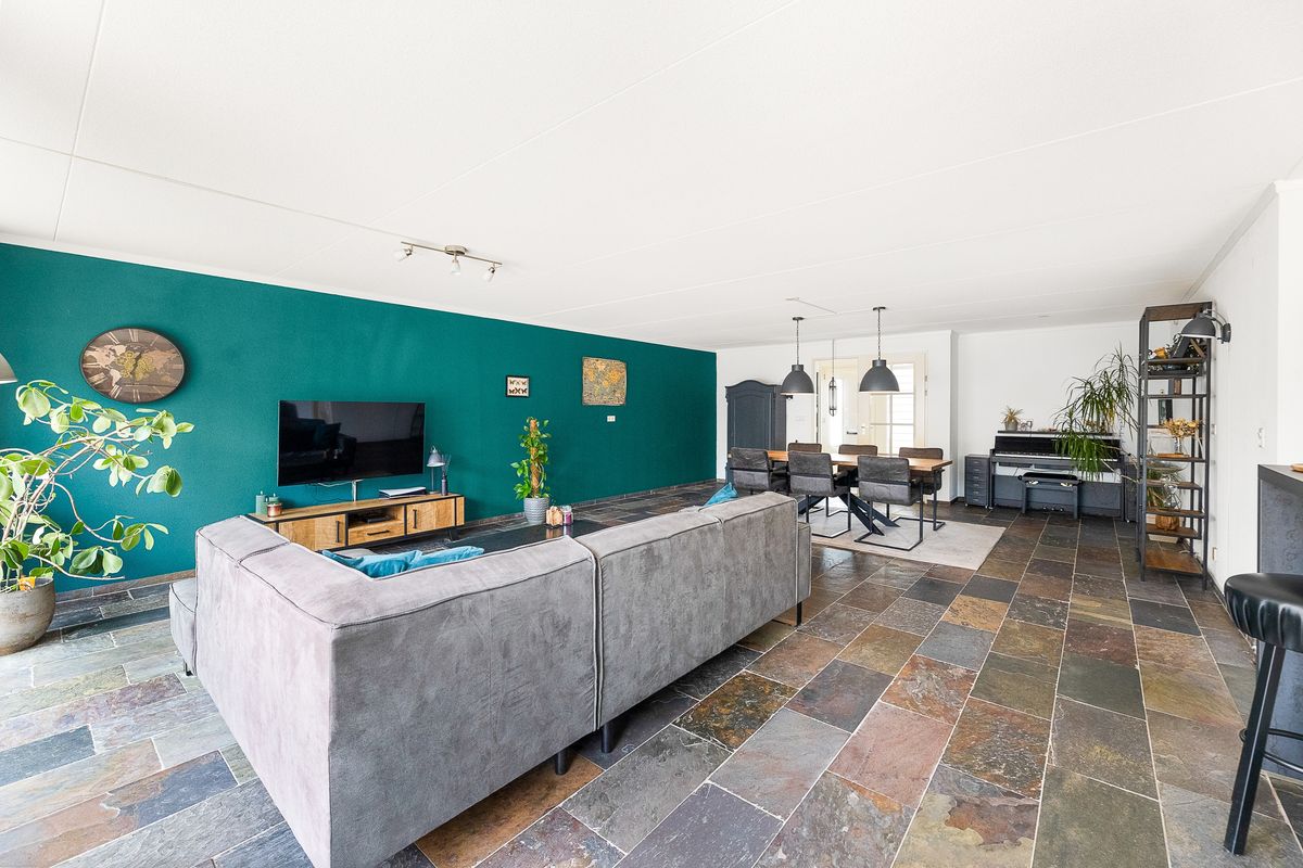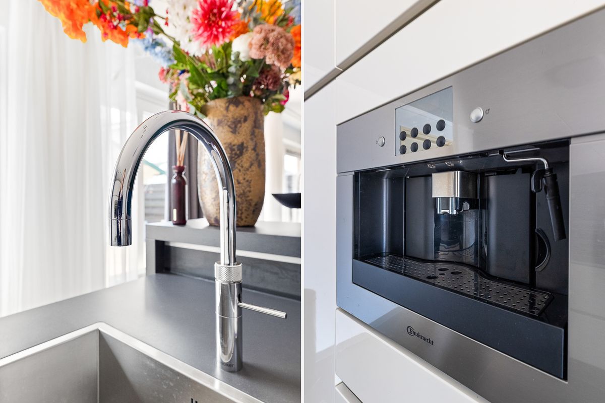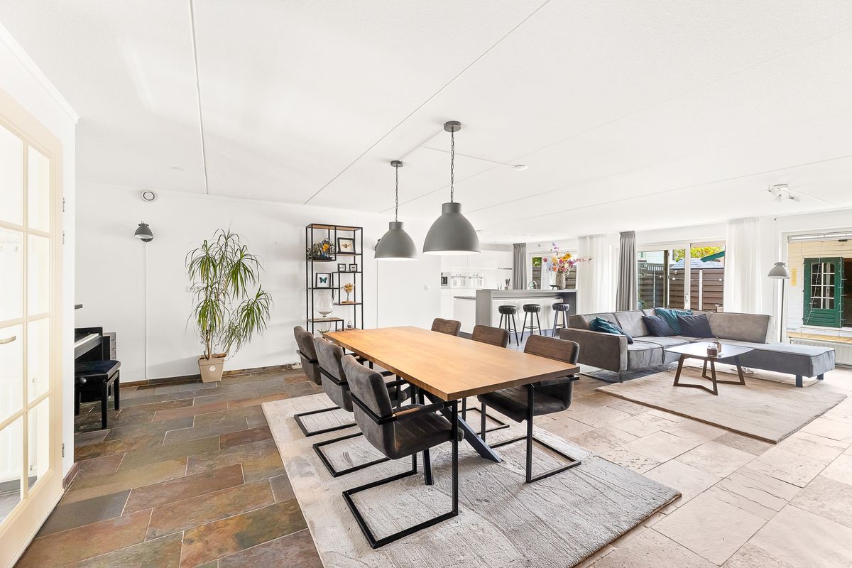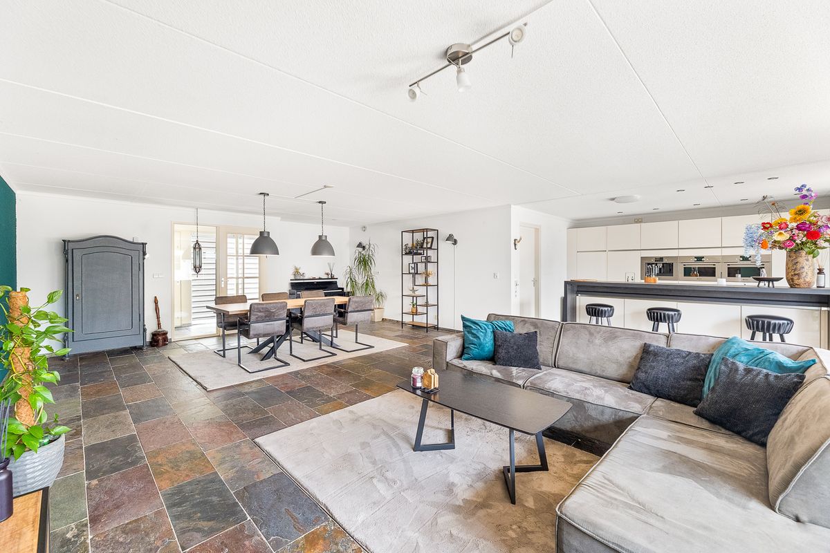 Entree in ruime hal met meterkast, toilet, trapopgang naar de 1e verdieping en doorgang naar de woonkamer. Bij binnenkomst in de woonkamer valt direct de ruimtelijkheid op en de grote raampartijen aan de tuinzijde. De open keuken is uitgevoerd met een werkeiland en is voorzien van de wenselijke inbouwapparatuur.