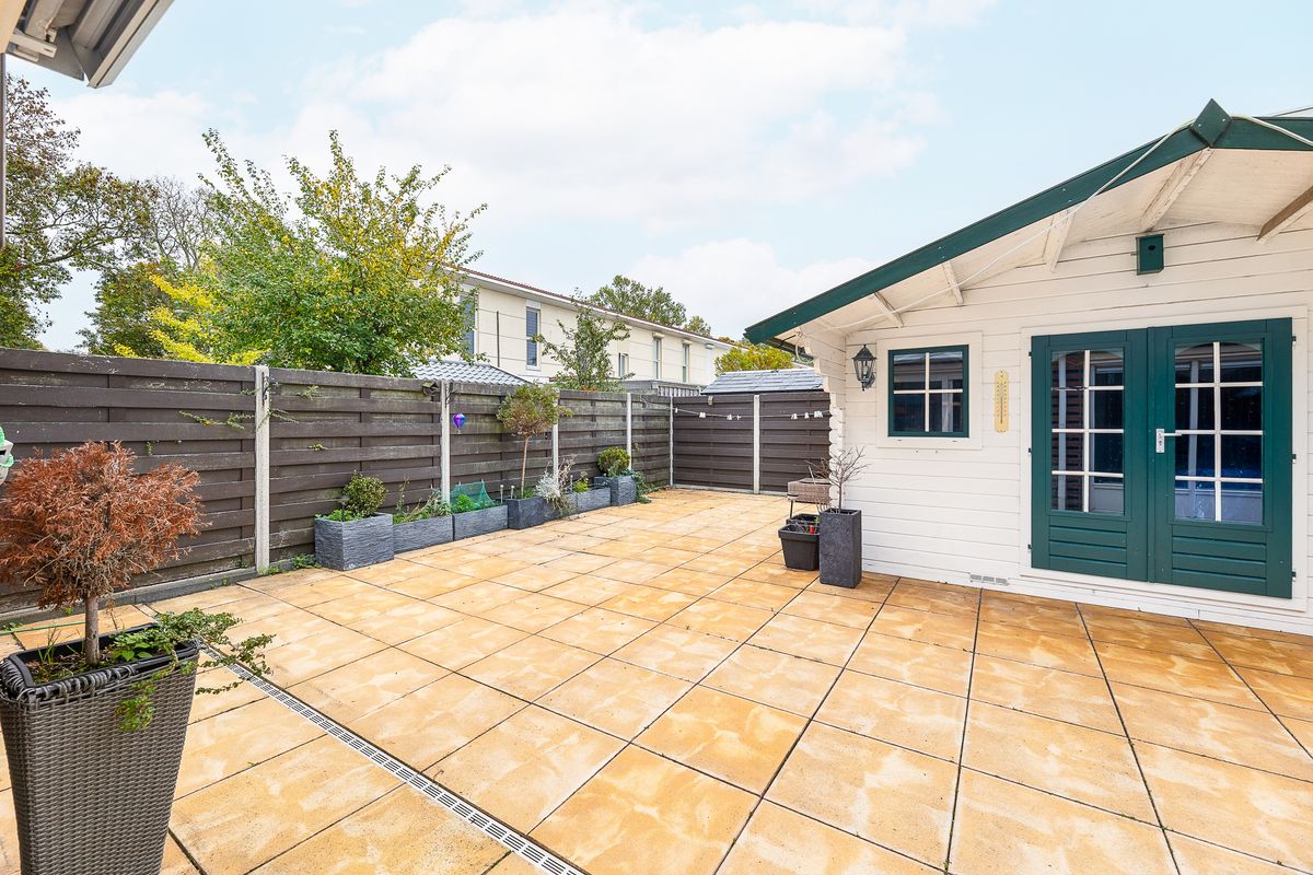 De achtertuin is zowel vanuit de woonkamer via de schuifpui te bereiken.