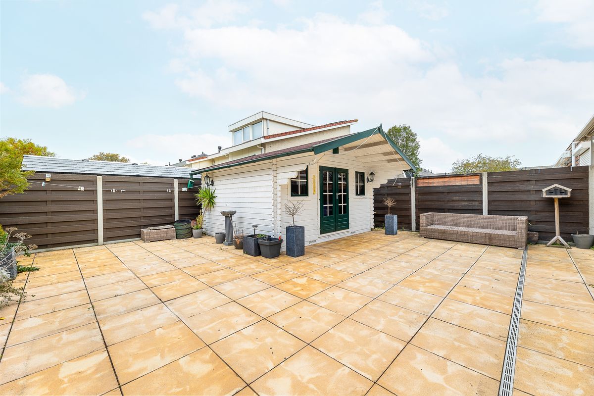 De tuin is onderhoudsarm aangelegd met sierbestrating en is voorzien van een groot terras. Ook is er een fijn ruim chalet voor de tuinspullen.