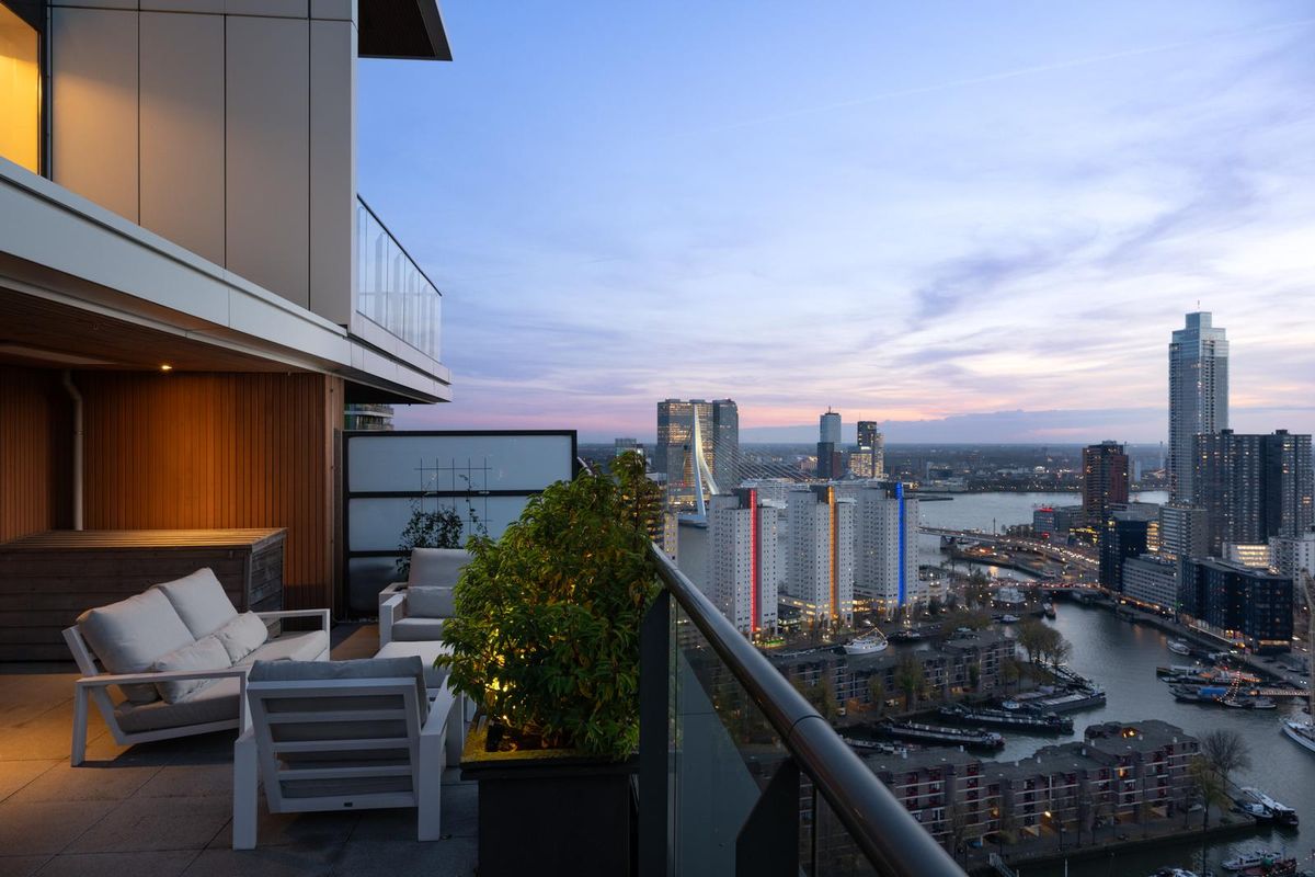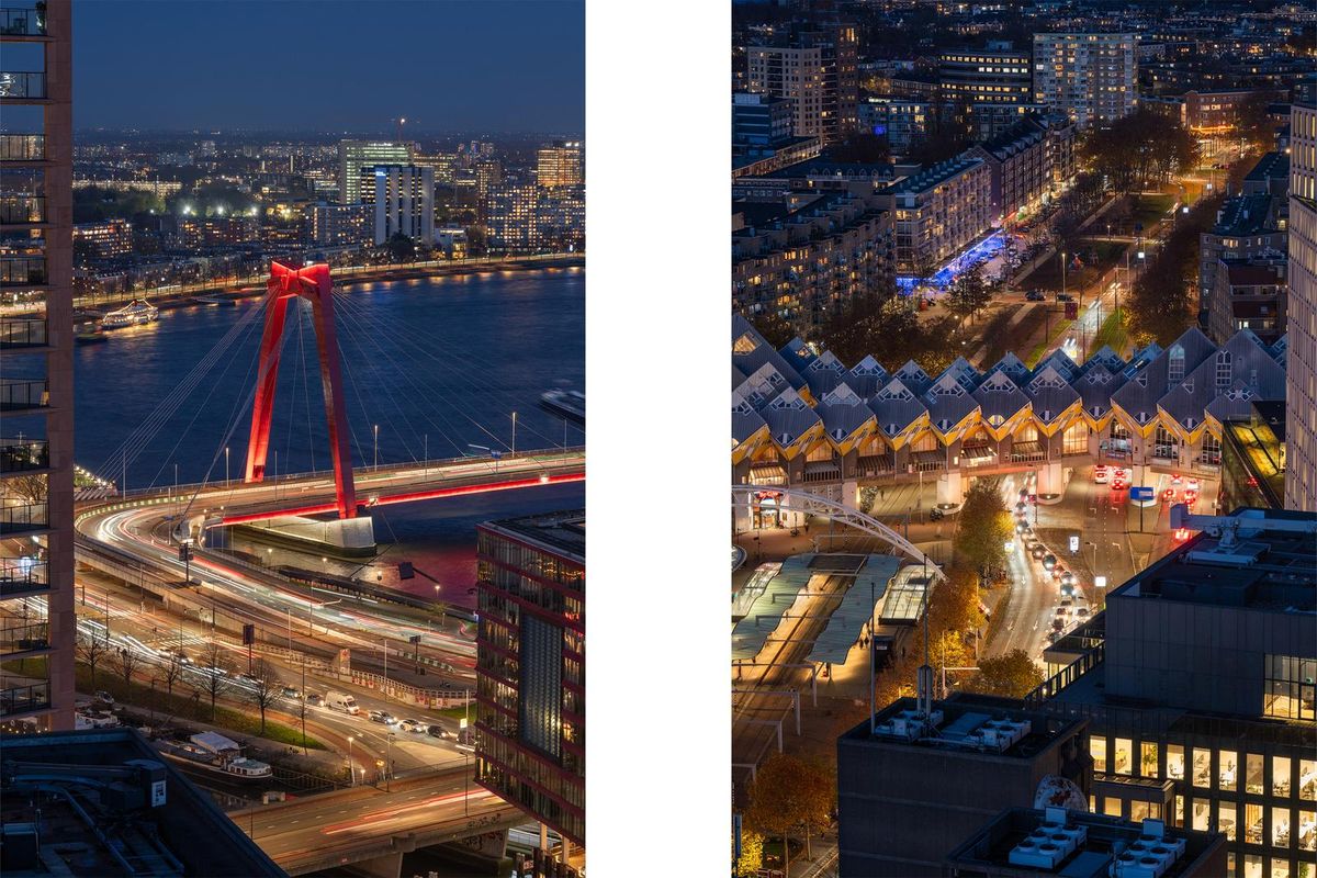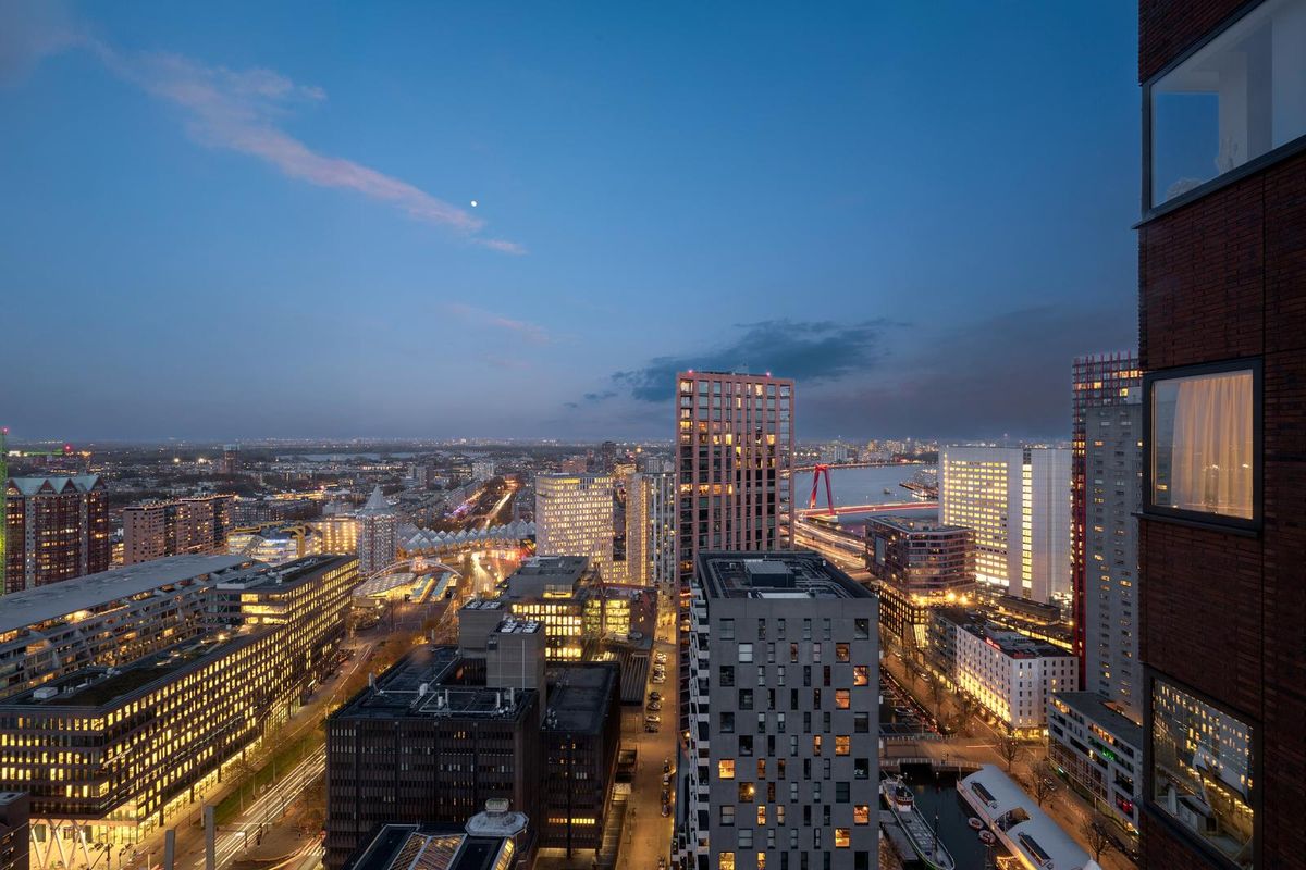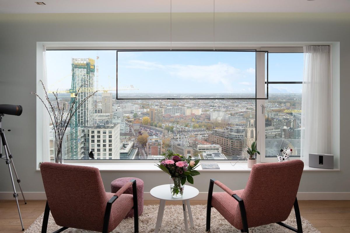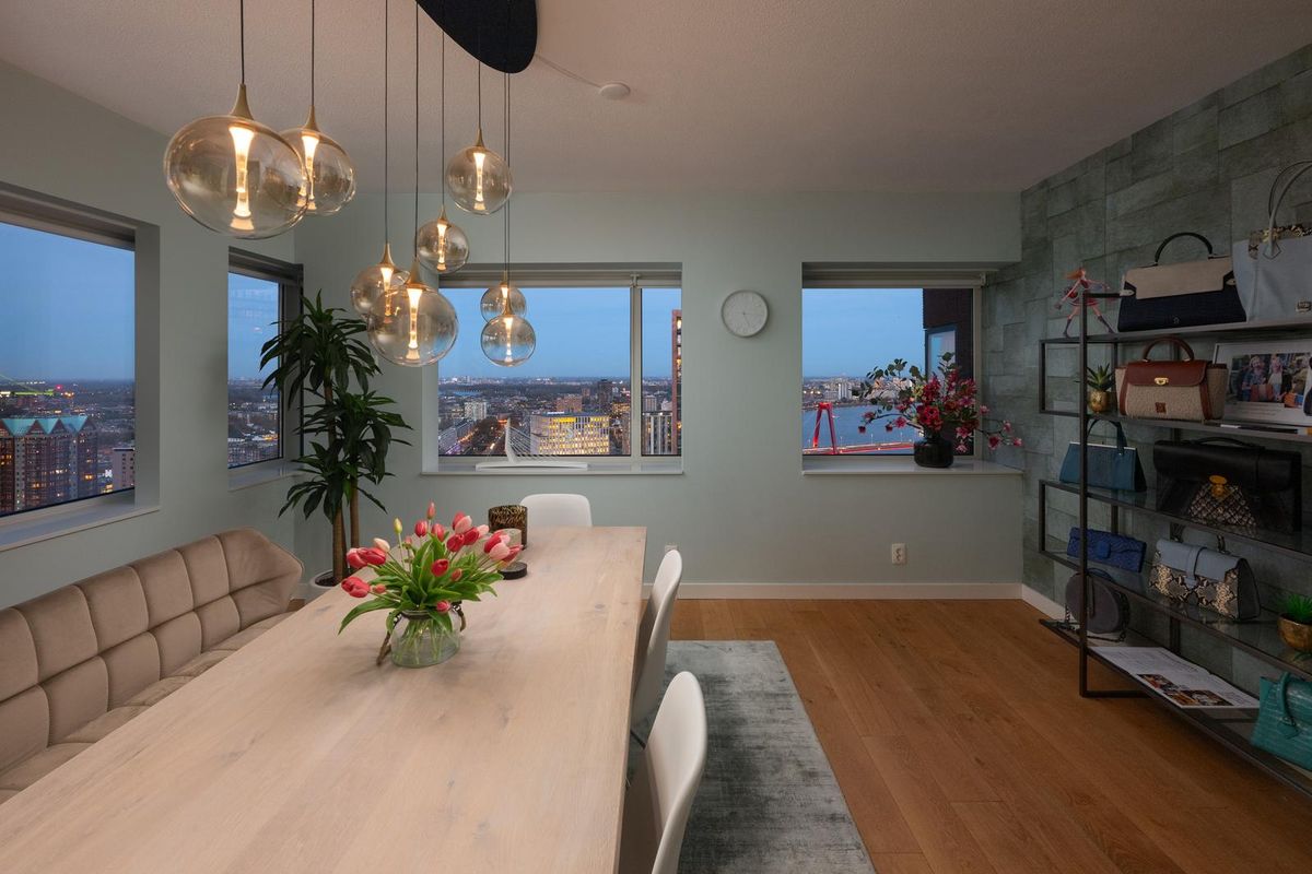 When the sun gently touches the city and the Maas catches the light, you slide open the doors and feel it instantly: this is living with a view. High above the vibrant rhythm of Rotterdam, yet right in the heart of its energy. At the same time, you experience an extraordinary sense of calm here, an oasis, while the city centre is just a 2-minute walk away. An apartment that breathes serenity, offers space, and carries a subtle elegance that seamlessly matches the skyline transforming before your eyes each day. Welcome to Posthoornstraat 518, a home designed not just for living, but for truly being.
