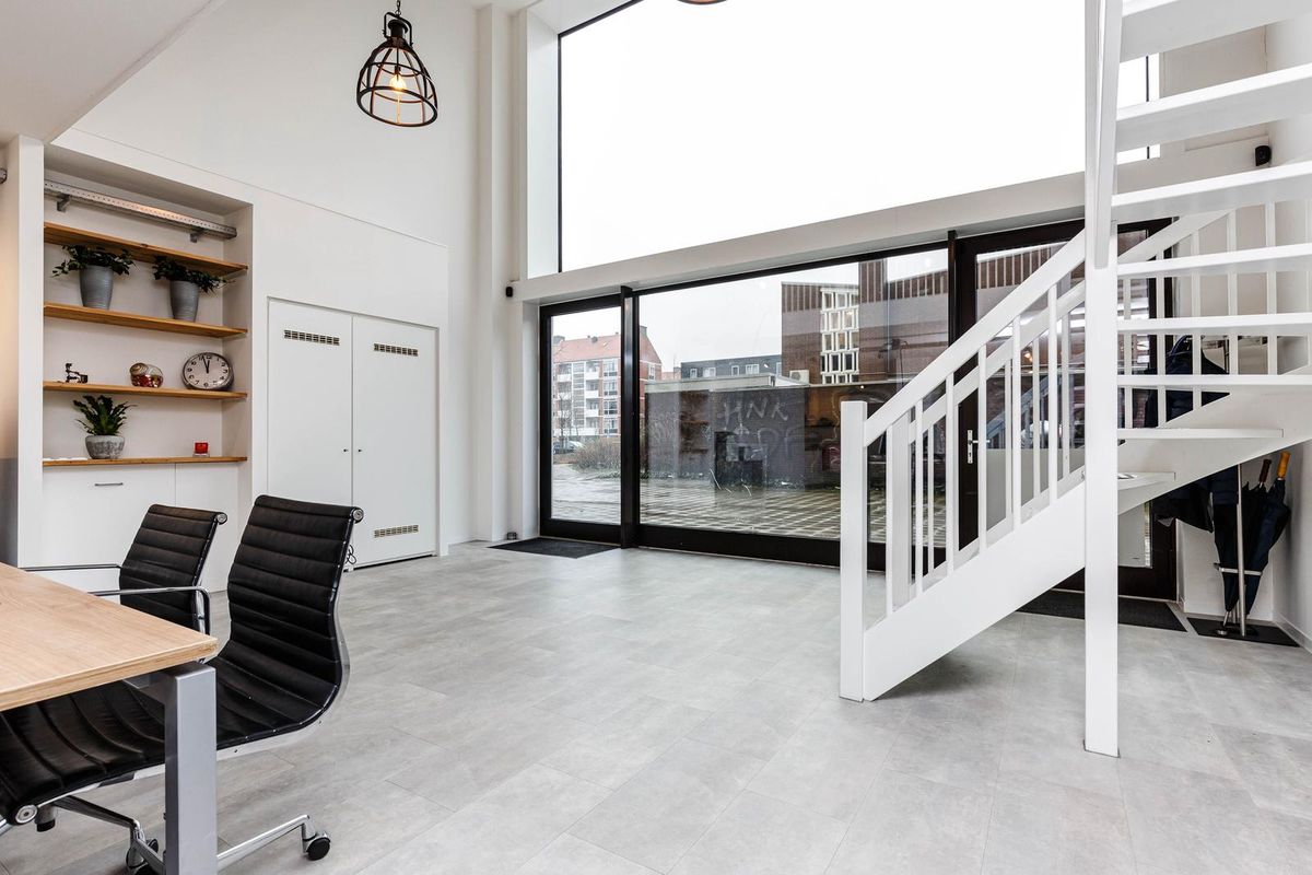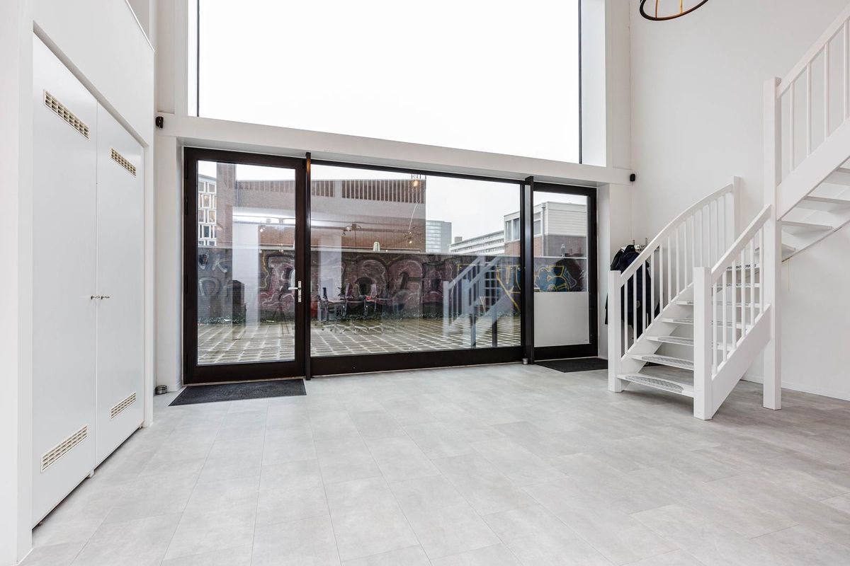 Loft-achtig" wonen en of werken met een unieke plafondhoogte van bijna 6 meter, in een energiezuinig en strak afgewerkte woning of een combinatie met werken is in dit appartement uit 2020 mogelijk. De unit op de begane grond is nu in gebruik als kantoor maar met enige creativiteit om te bouwen naar een volledige woning of een combinatie van wonen en werken. Het appartement van 112m2 is verdeeld over twee woonlagen. De voor de koper optionele twee eigen parkeerplaatsen bevinden zich vooraan in de parkeergarage. De erfpacht is voortdurend tot 2066 afgekocht! Doordat de vloer is voorzien van vloerverwarming en overal HR+++ glas, heeft lage stookkosten en een energielabel A.