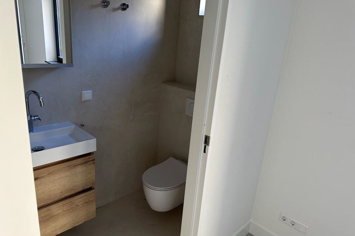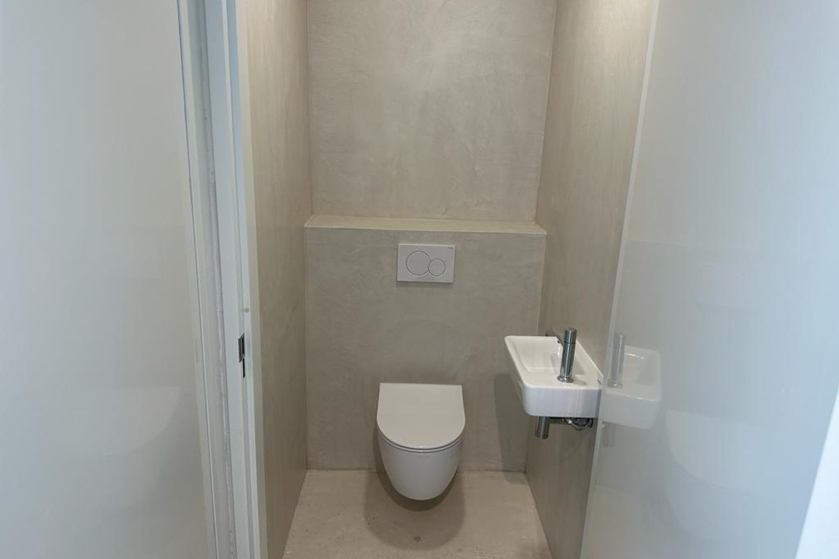 The walls are finished with beton-ciré, giving the bathroom a luxurious look and feel. Combined with high-quality sanitary fittings from Grohe, this bathroom truly stands out in terms of quality.