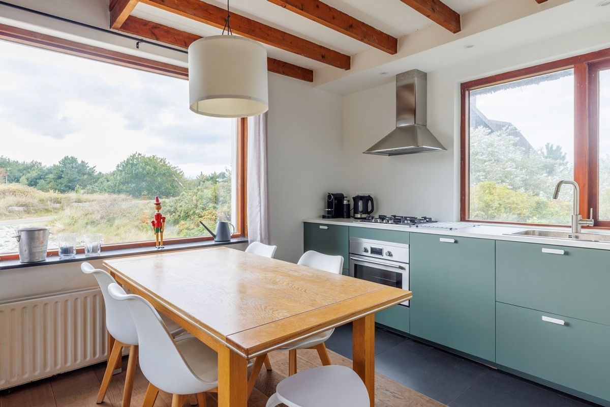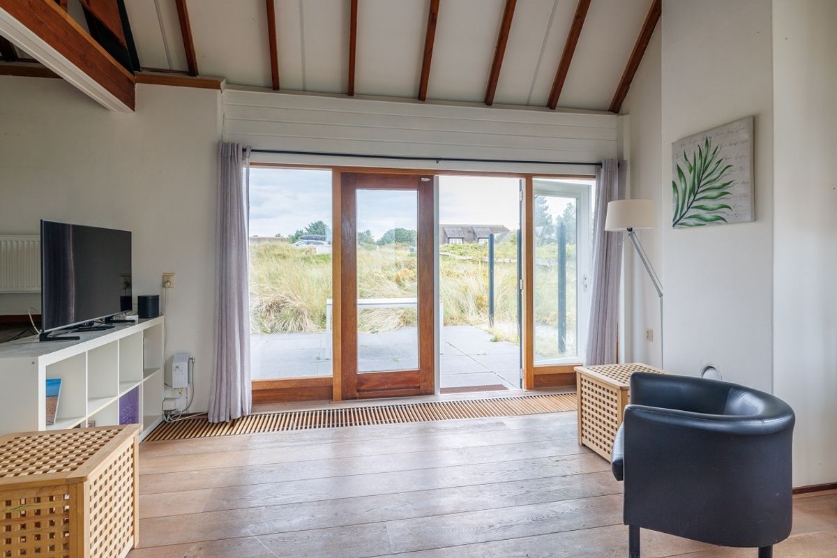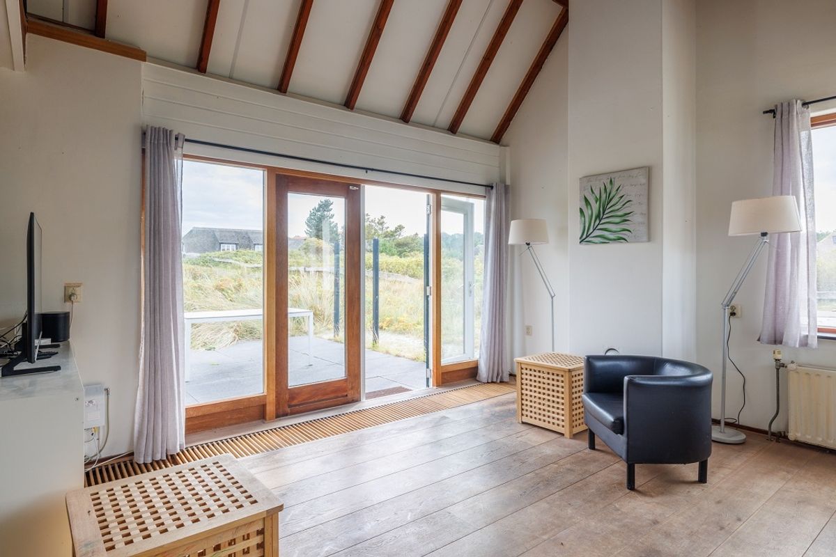 Vanuit de woonkamer leiden openslaande deuren direct naar het zonnige terras op het zuiden – dé plek om te genieten van lange zomerdagen en de rust van de duinen.