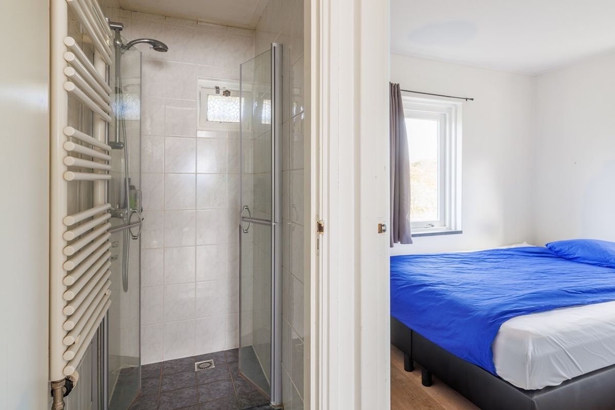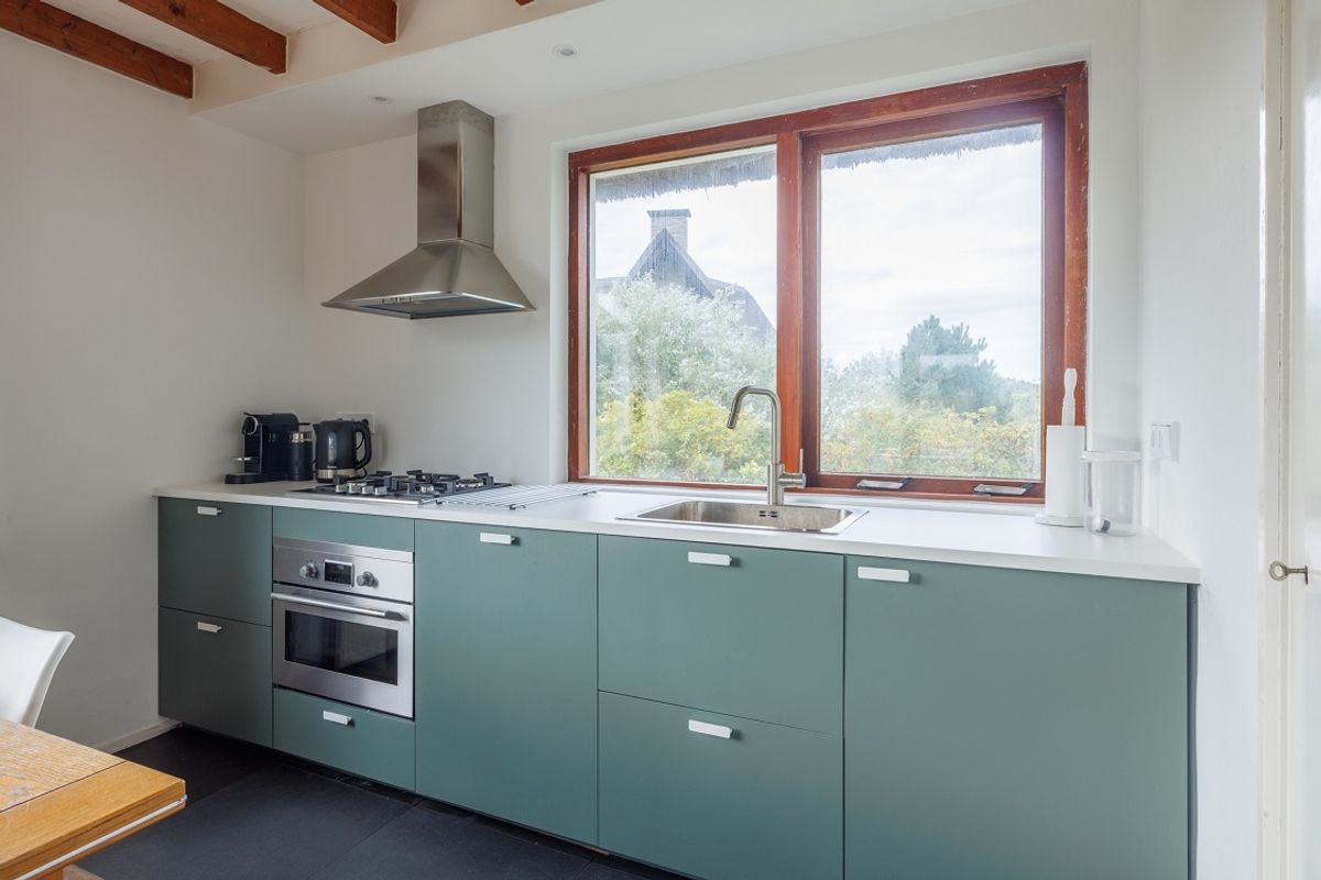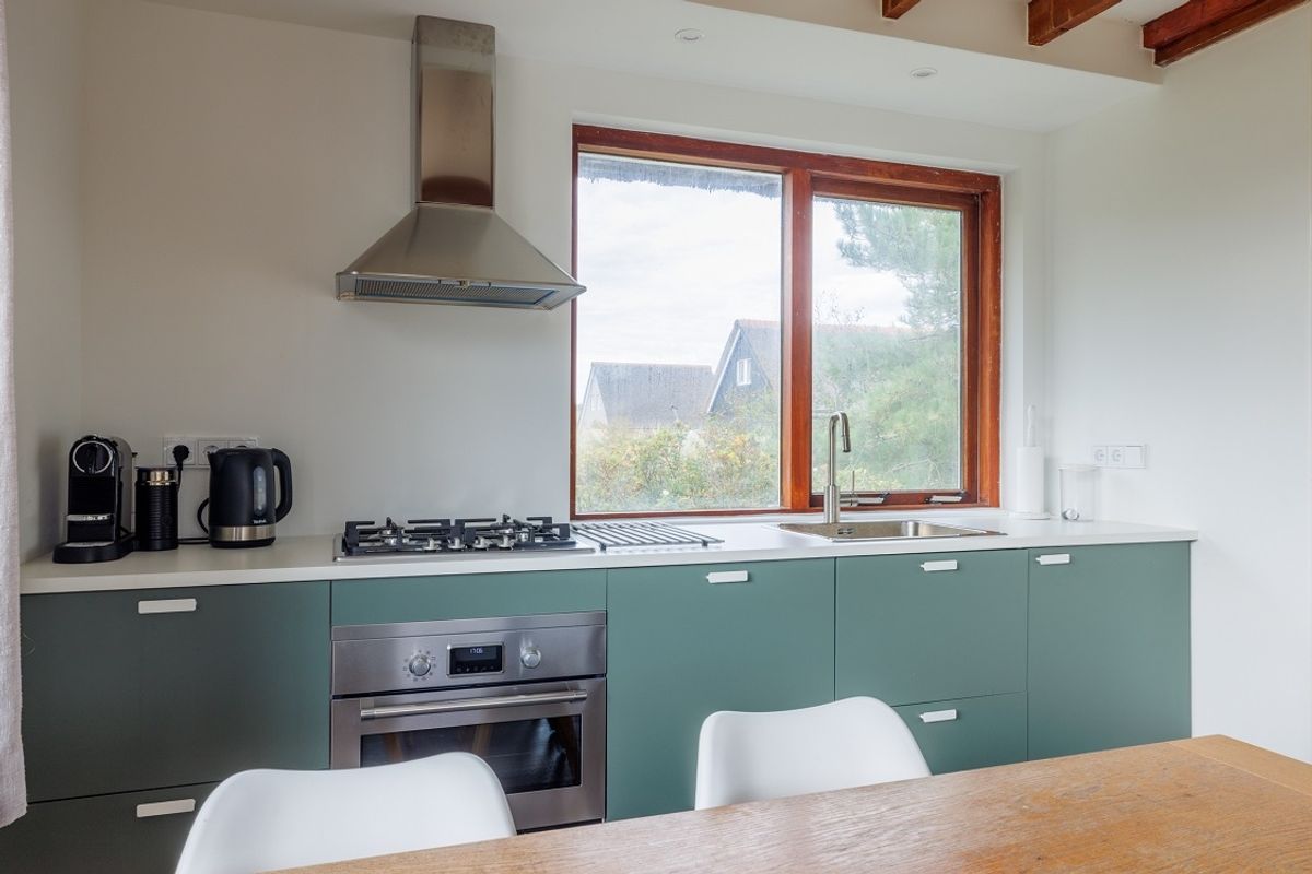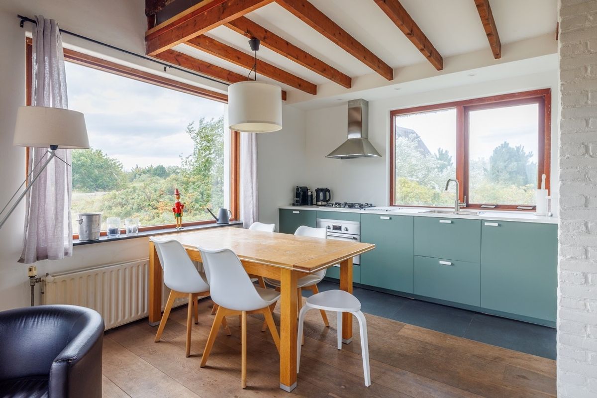 Vanuit de woonkamer leiden openslaande deuren direct naar het zonnige terras op het zuiden – dé plek om te genieten van lange zomerdagen en de rust van de duinen.