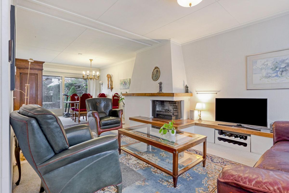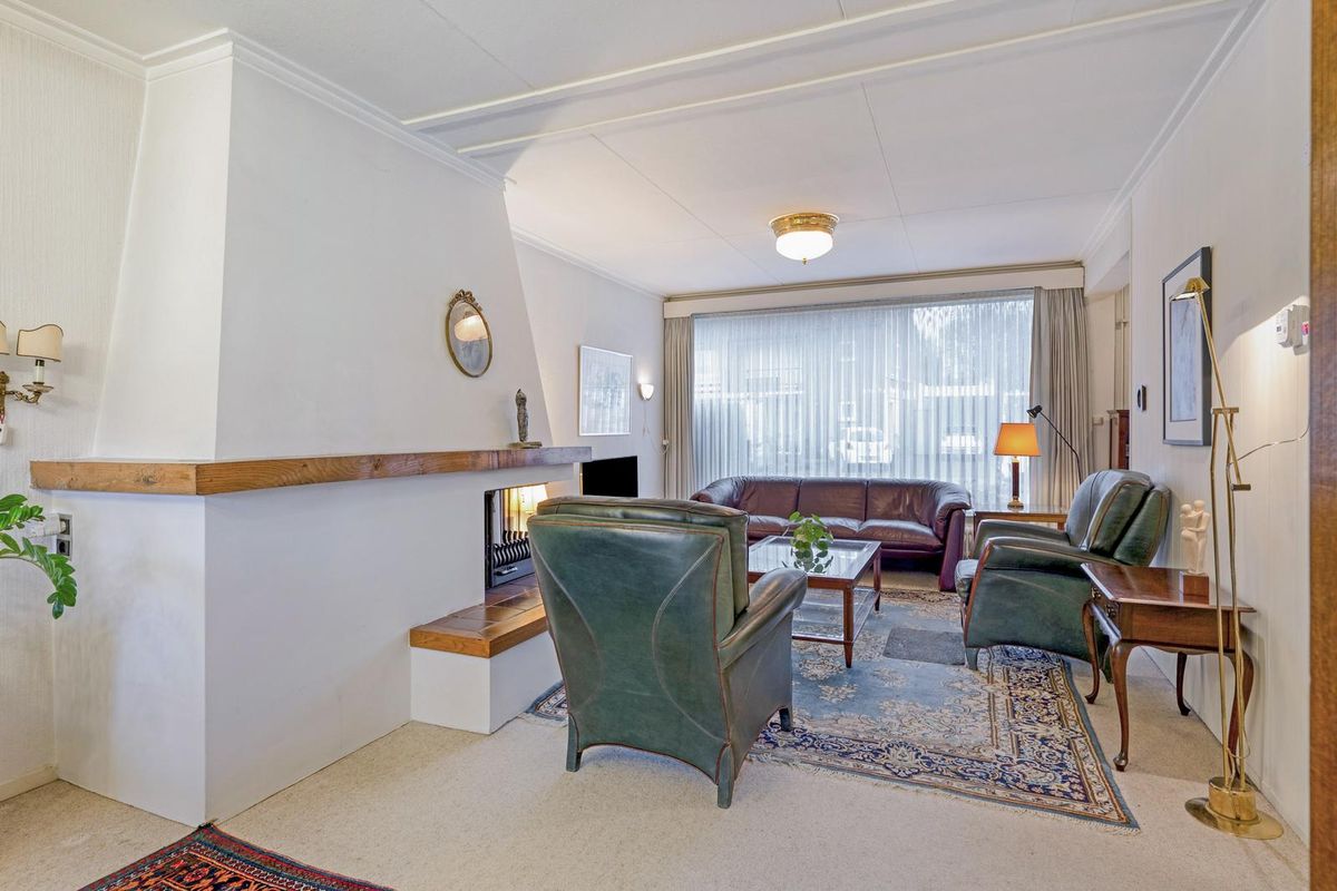 Ruime lichte woonkamer 6.43/3.74/9.17 met schuifpui en open haard.