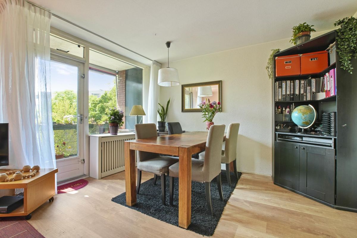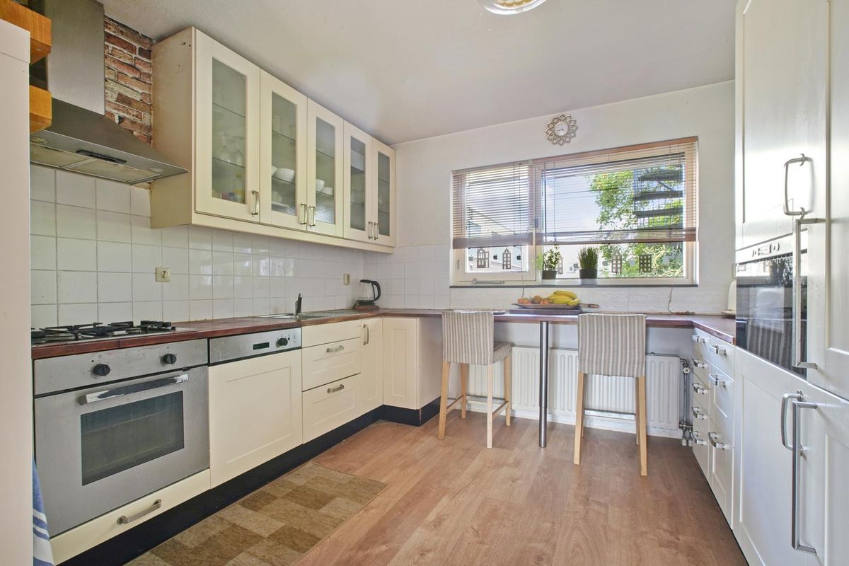 De ruime woonkamer is dankzij de grote raampartijen heerlijk licht en vormt een zeer gezellig living. Vanuit hier geeft een openslaande deur toegang tot het extra diepe balkon op zonnige zuidwesten waar je tot in de avond kunt genieten van de zon! De royale keuken in U-opstelliing is voorzien van alle gemakken een oven, 4-pits gasfornuis met afzuigkap, vaatwasser, magnetron, koelkast én vriezer. Vanuit de hal geeft de inpandige trap toegang de eerste verdieping van de woning.