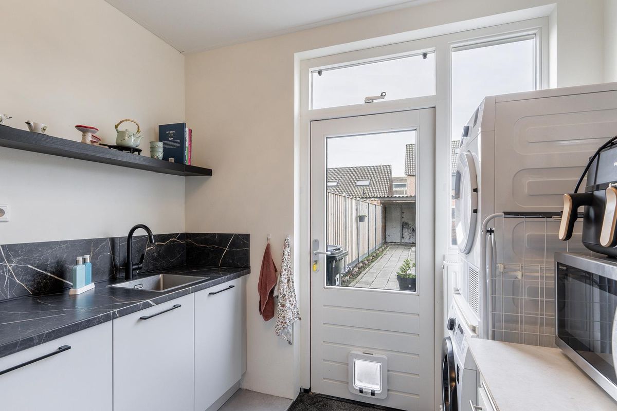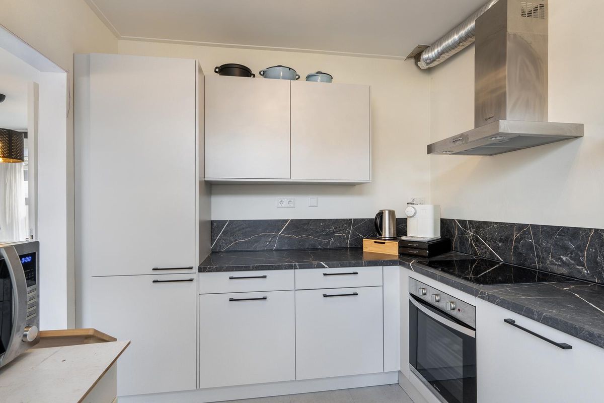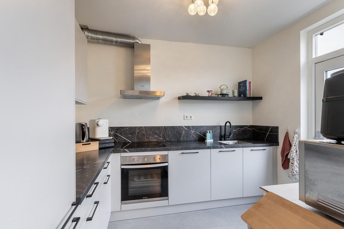 De moderne keuken in hoekopstelling is vernieuwd in 2021 en voorzien van een inductiekookplaat, oven, vaatwasser, afzuigkap, koelkast, vriezer, spoelbak en bovenkasten. Ook zijn er aansluitingen voor een vaatwasser en wasmachine aanwezig. Vanuit de keuken is er een doorloop naar de woonkamer en een deur naar de achtertuin.
