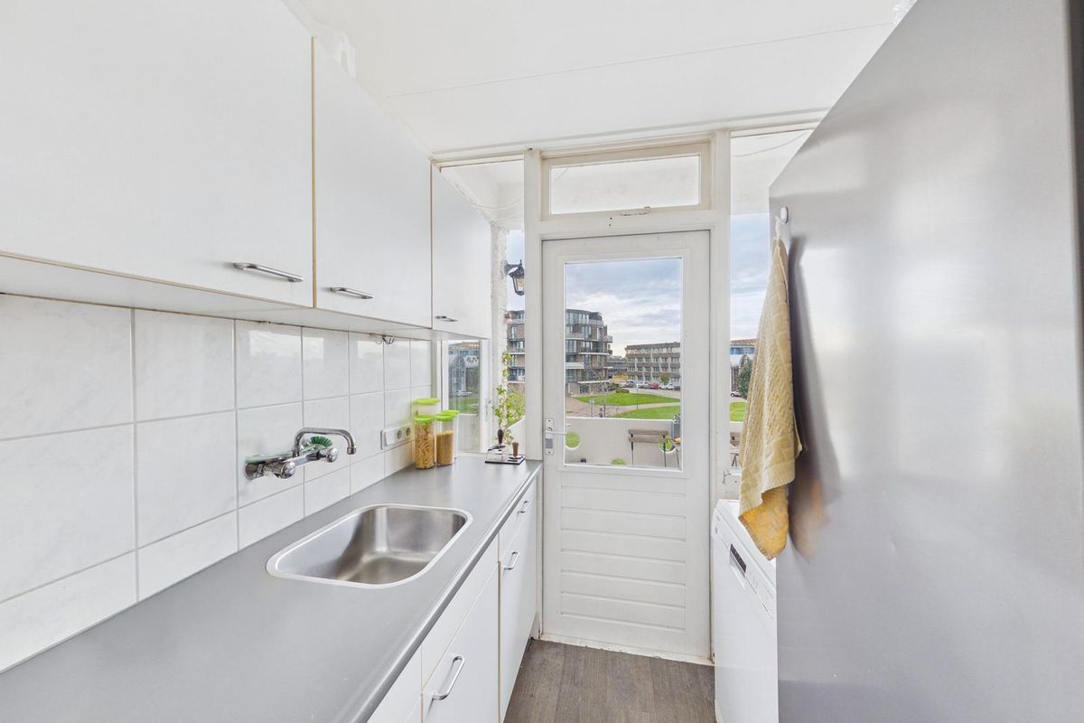 De keuken is uitgevoerd in een frisse witte kleur. Vanuit de keuken stap je zo het zonnige balkon op — gelegen op het zuiden — waar je het hele jaar door van de zon kunt genieten.