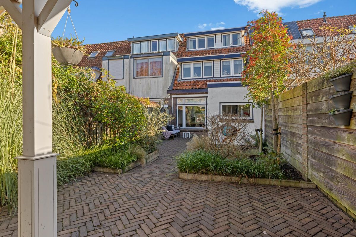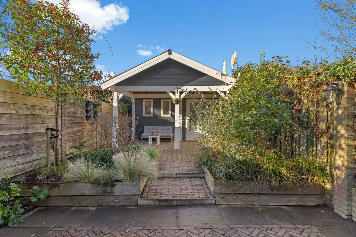 De tuin is strak en verzorgd aangelegd. Direct aan het huis is ruimte voor een loungeset en kun je het zonnescherm uitdraaien voor extra schaduw. Verder naar achteren liggen twee mooie groenstukken die de tuin een frisse uitstraling geven. Helemaal achterin staat een ruime schuur met overkapping waar je een comfortabele loungeset kunt plaatsen en heerlijk droog zit. De schuur biedt volop ruimte voor een werkbank en het stallen van fietsen en door de hoogte kun je hier ook extra spullen kwijt. Via een praktische achterdeur kun je achterom.
