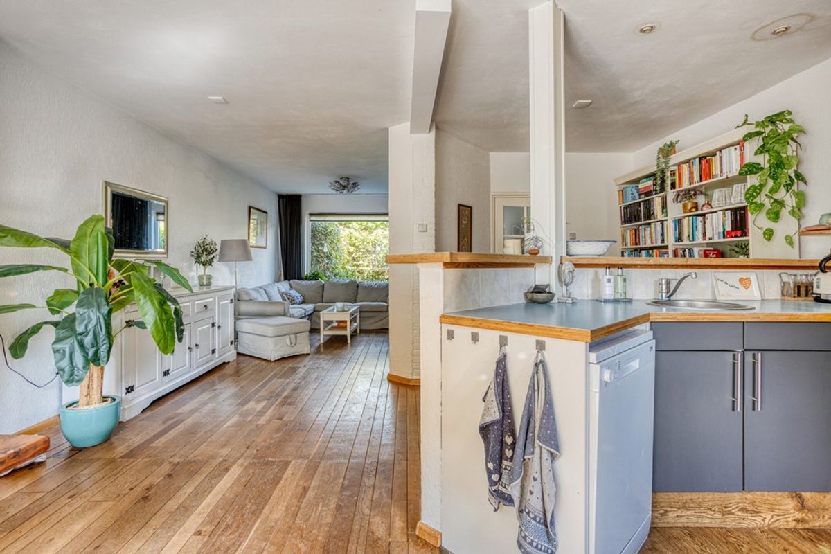 Vervolgens komt u in de lichte woonkamer, het hart van de begane grond. Dankzij de grote raampartijen geniet u hier van een fijne lichtinval en een ruimtelijk gevoel. De open indeling biedt volop mogelijkheden om een comfortabele zithoek en een gezellige eetkamer te creëren. Een ideale plek om te ontspannen of gasten te ontvangen.