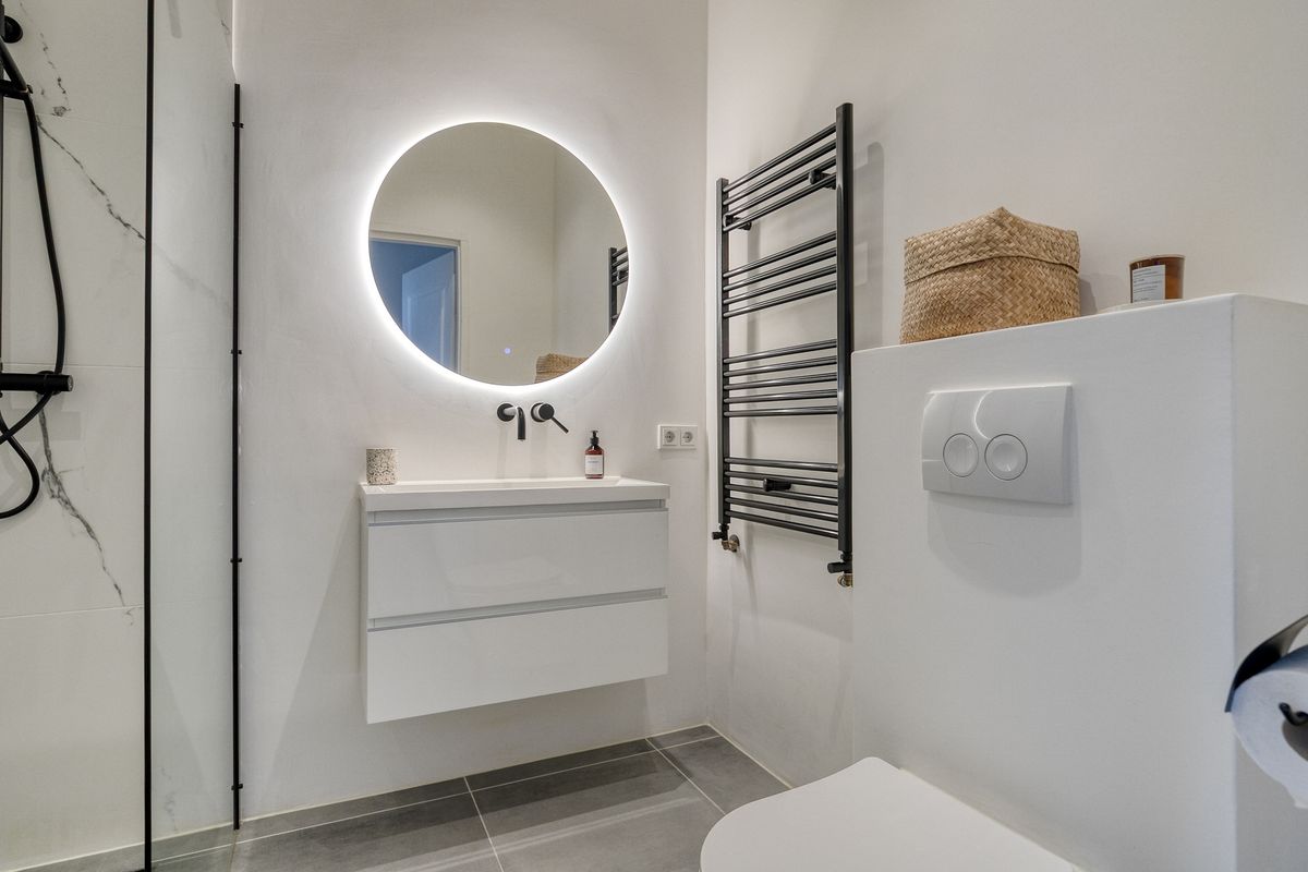 Op de eerste verdieping leidt de overloop naar drie slaapkamers, waarvan één royale kamer aan de achterzijde en twee aan de voorzijde. De twee slaapkamers aan de voorzijde zijn goed te gebruiken als kinder- of werkkamer en beide voorzien van rolluiken. De luxe badkamer, in 2021 volledig vernieuwd, is centraal gelegen en voorzien van een inloopdouche, wastafelmeubel en een tweede toilet.