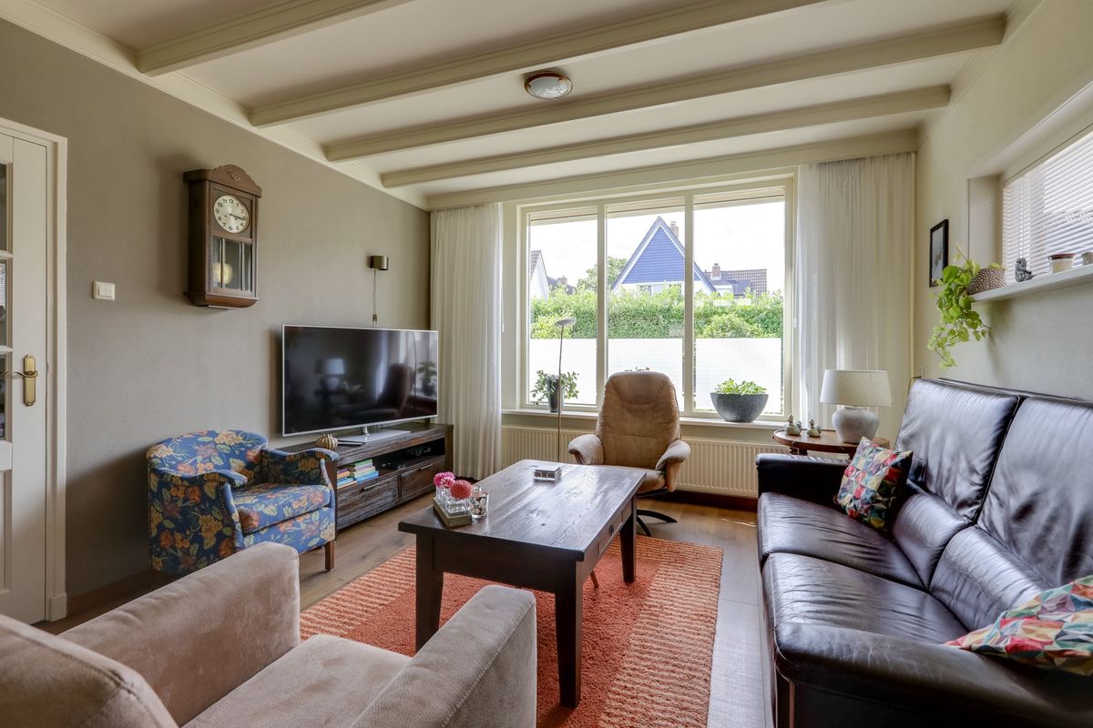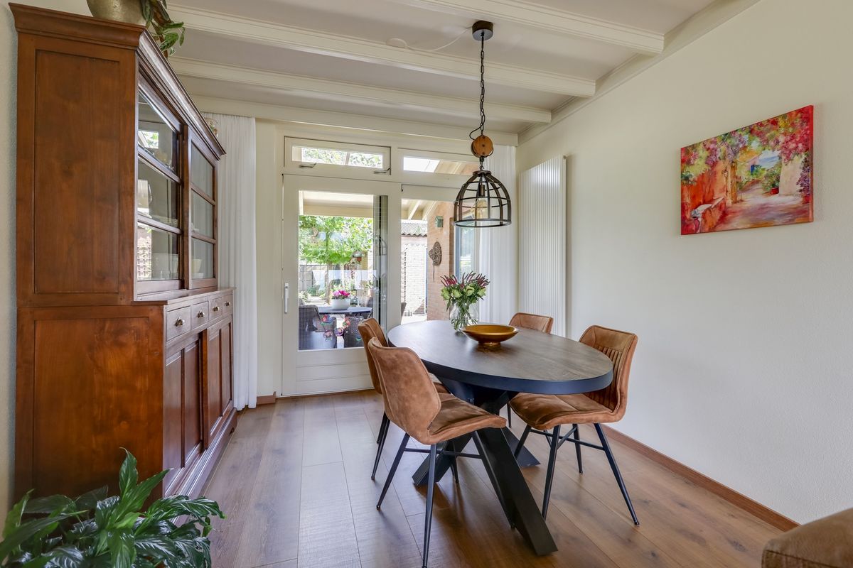 Deze woning beschikt over zowel een voor- als achtertuin waardoor er volop ruimte is voor ontspanning en genieten van de zon of de schaduw. In de fraai aangelegde voortuin vind je een mooie groene buxushaag en diverse groene beplanting. Een speels grindpad leidt je naar de voordeur en geeft de voortuin een charmante uitstraling. De achtertuin is eveneens heel erg fraai aangelegd en biedt een royaal terras onder de overkapping ideaal voor gezellige zomeravonden en buiten eten. Daarnaast beschikt de tuin over borders met verschillende planten, gazon en een prachtige boom die in de zomer zorgt voor natuurlijke schaduw. Het kleine dierenverblijf achter in de achtertuin is een fijne plek voor eventueel kippen, konijnen, kwartels of cavia’s. Broeikas biedt de mogelijkheid om zelf groenten en fruit te kweken.