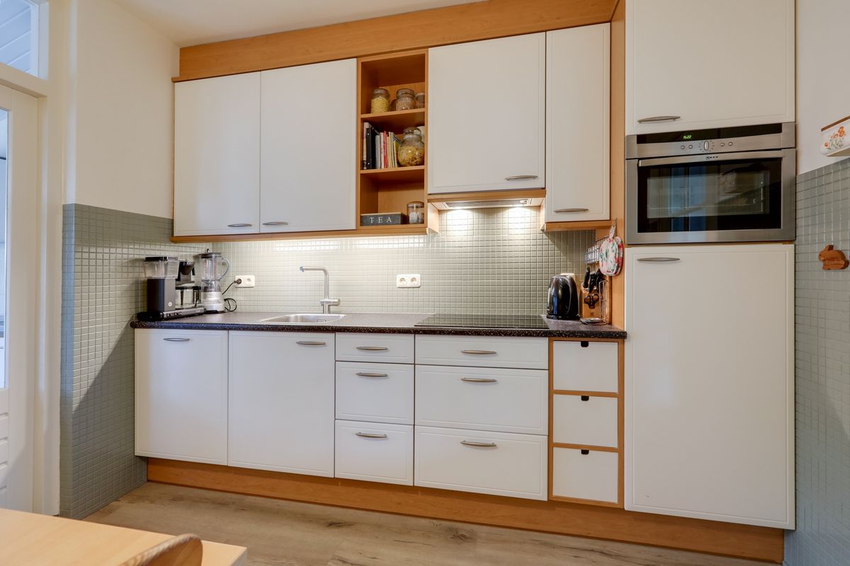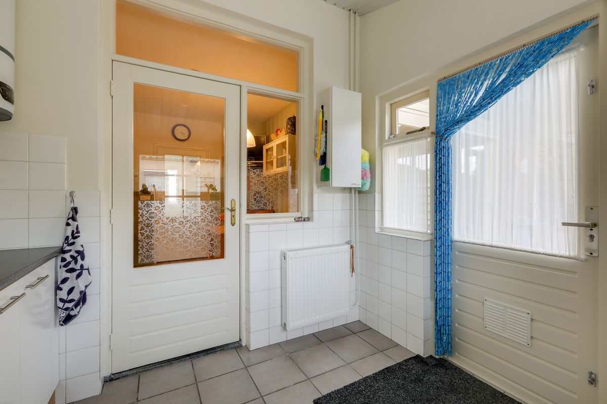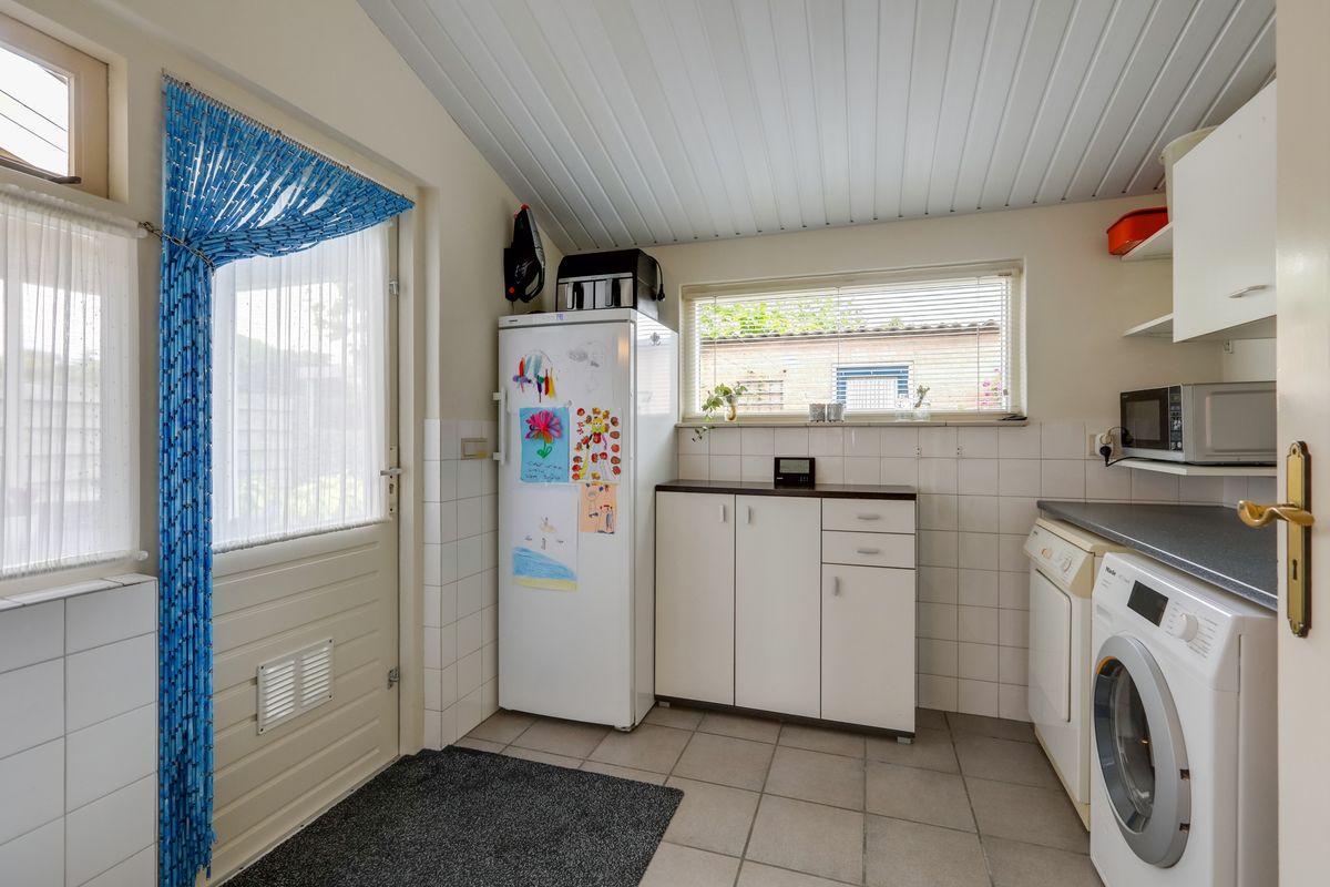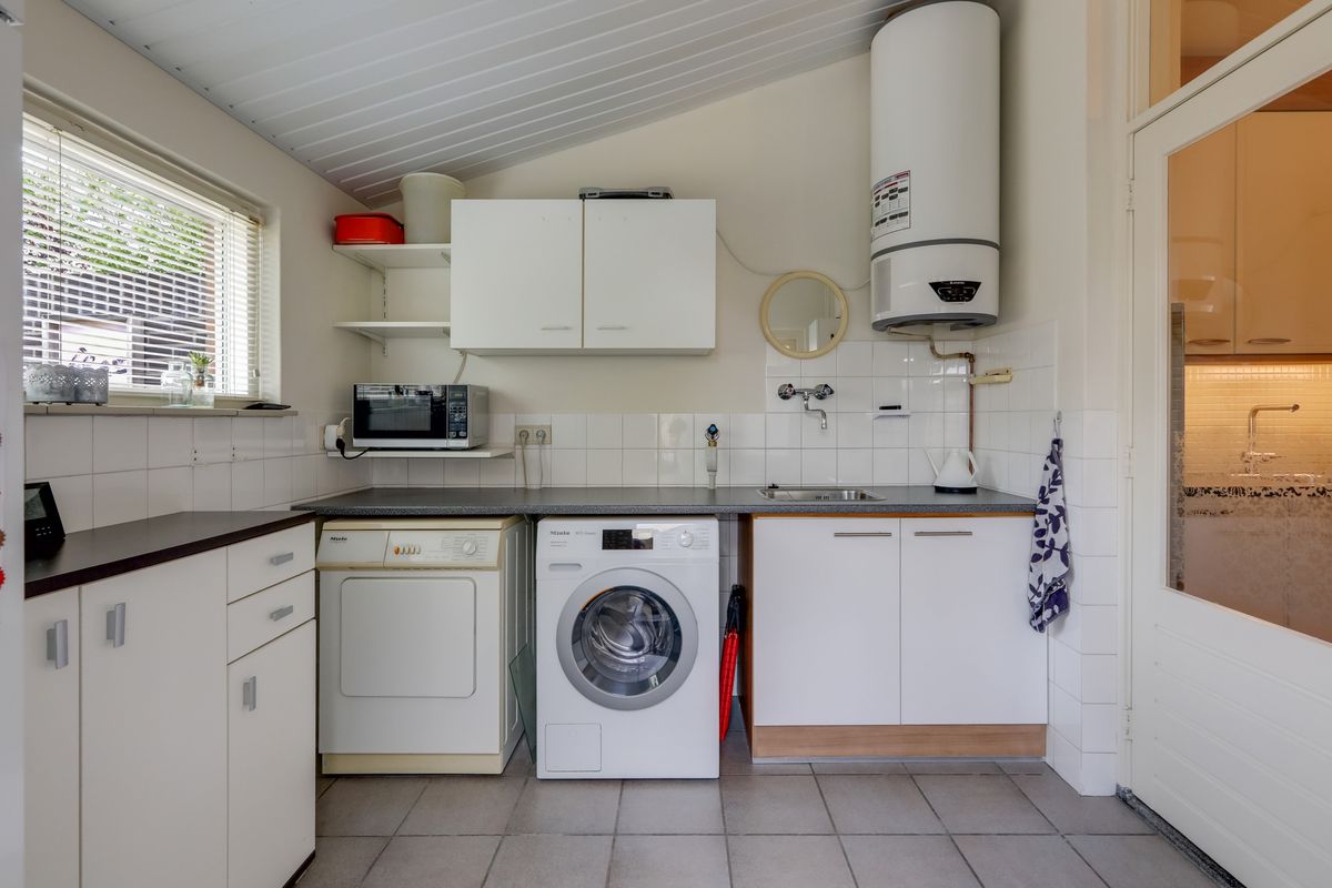 In de bijkeuken is ruimte voor de witgoedopstellingen en eventueel een extra koelkast of vriezer. Hier hangt ook de elektrische boiler voor het warme water bouwjaar 2020. Vanuit de bijkeuken heb je toegang tot de achtertuin die op het oosten gelegen is.