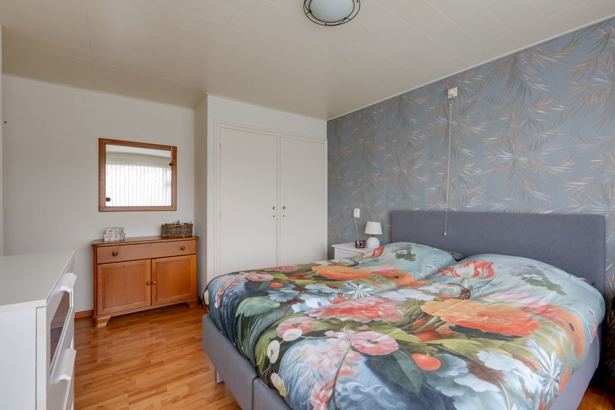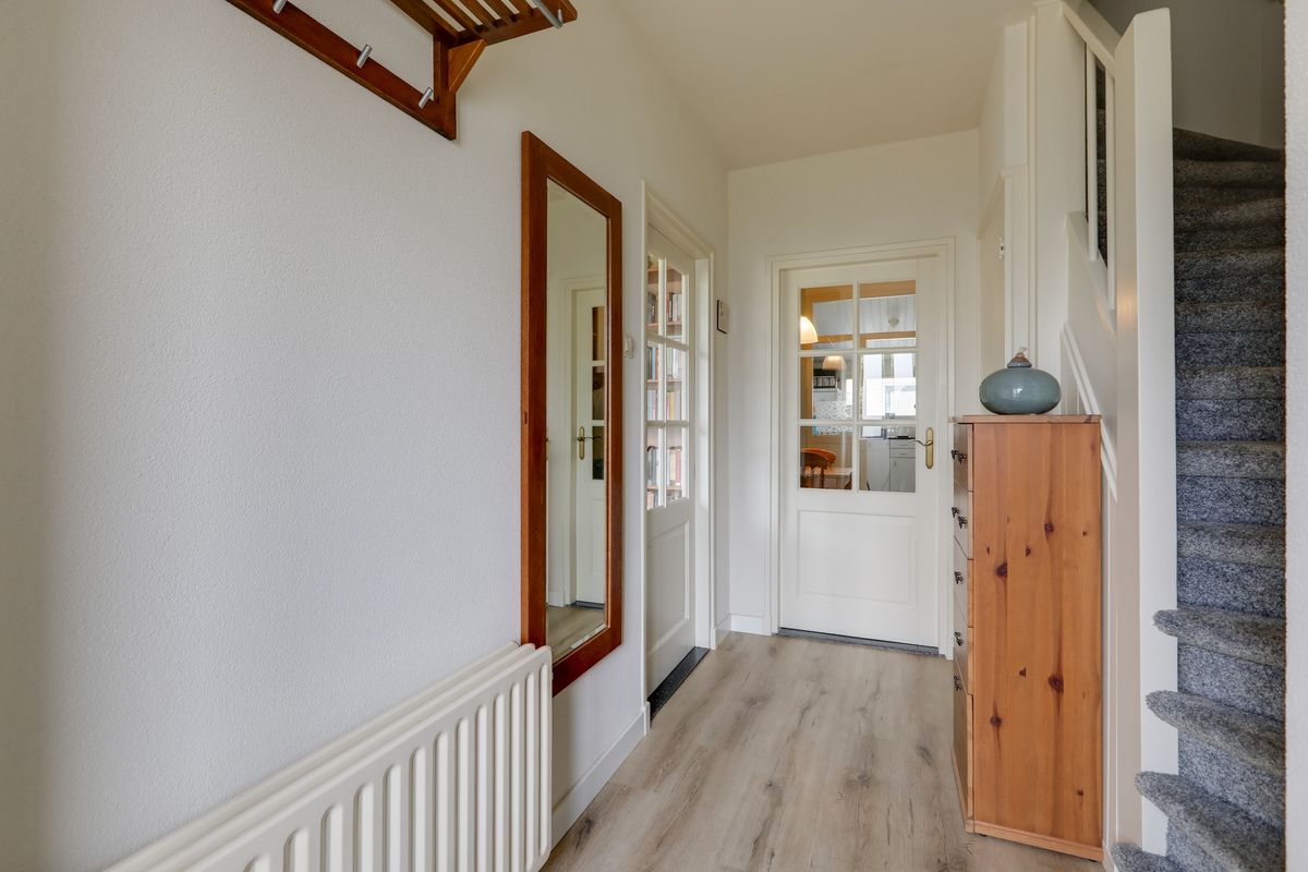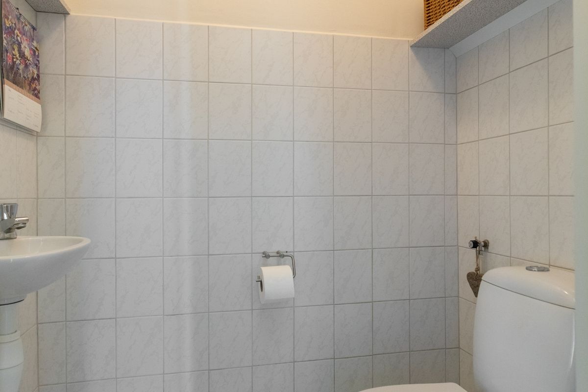 De stenen berging in de achtertuin biedt voldoende opbergruimte voor tuinbenodigdheden, gereedschap of andere spullen. Via de oprit naast de woning is er bovendien een achterom, zodat je gemakkelijk kunt binnenlopen zonder door de woning te hoeven gaan.
