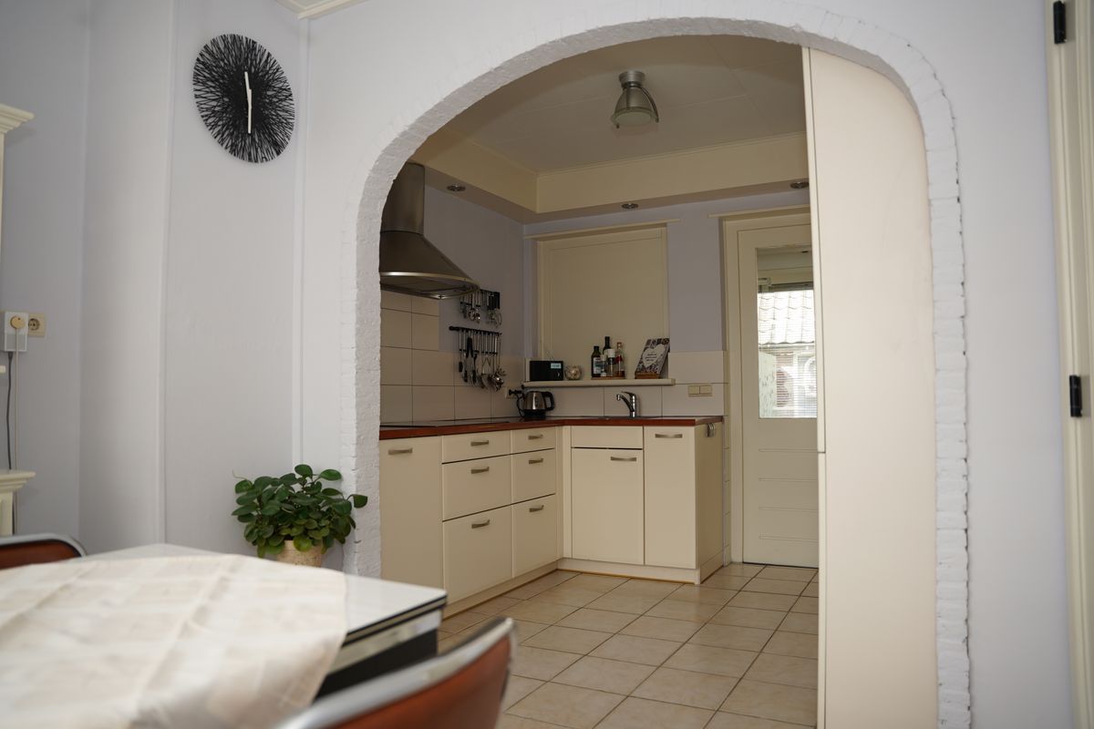 De ruime woonkeuken is voorzien van alle benodigde inbouwapparatuur. Een vaste kast en een kelderkast zorgen voor extra veel bergruimte. Heerlijk is de plek voor een eettafel.