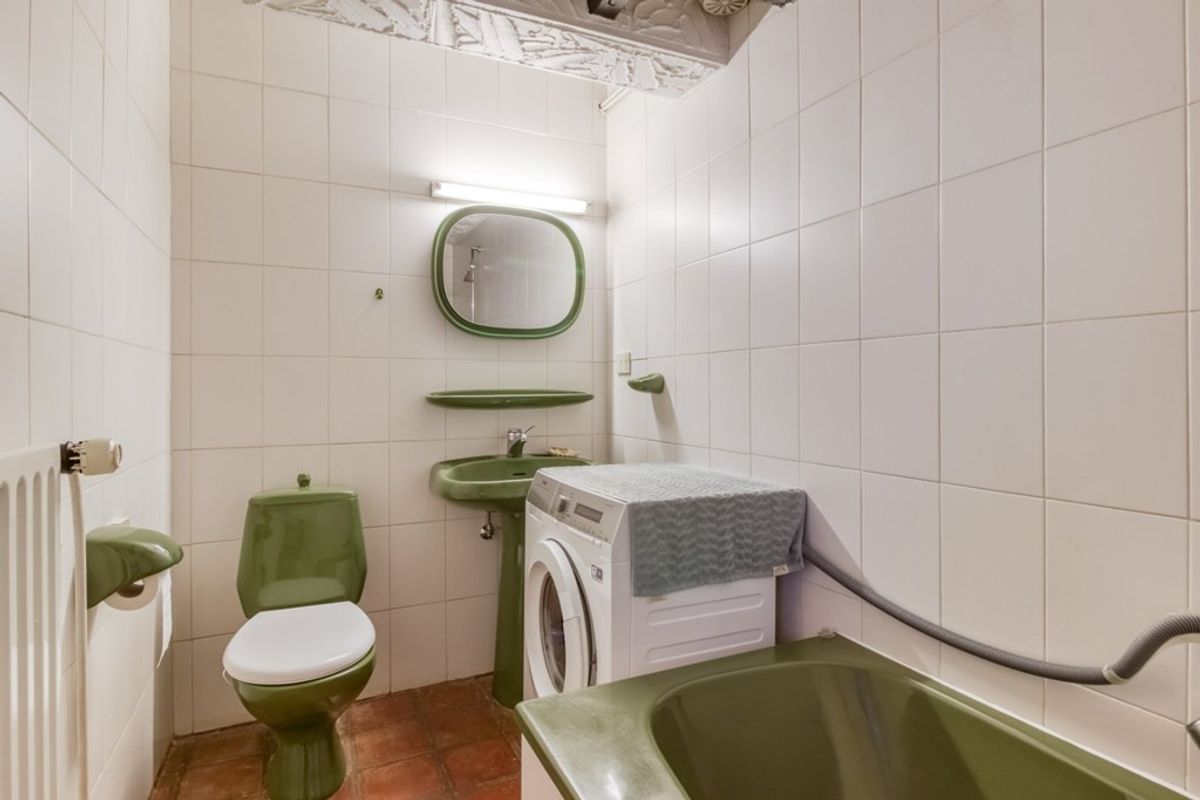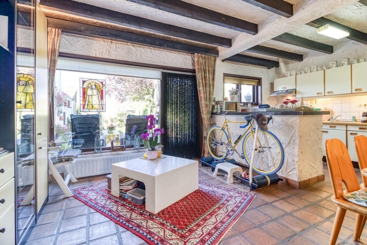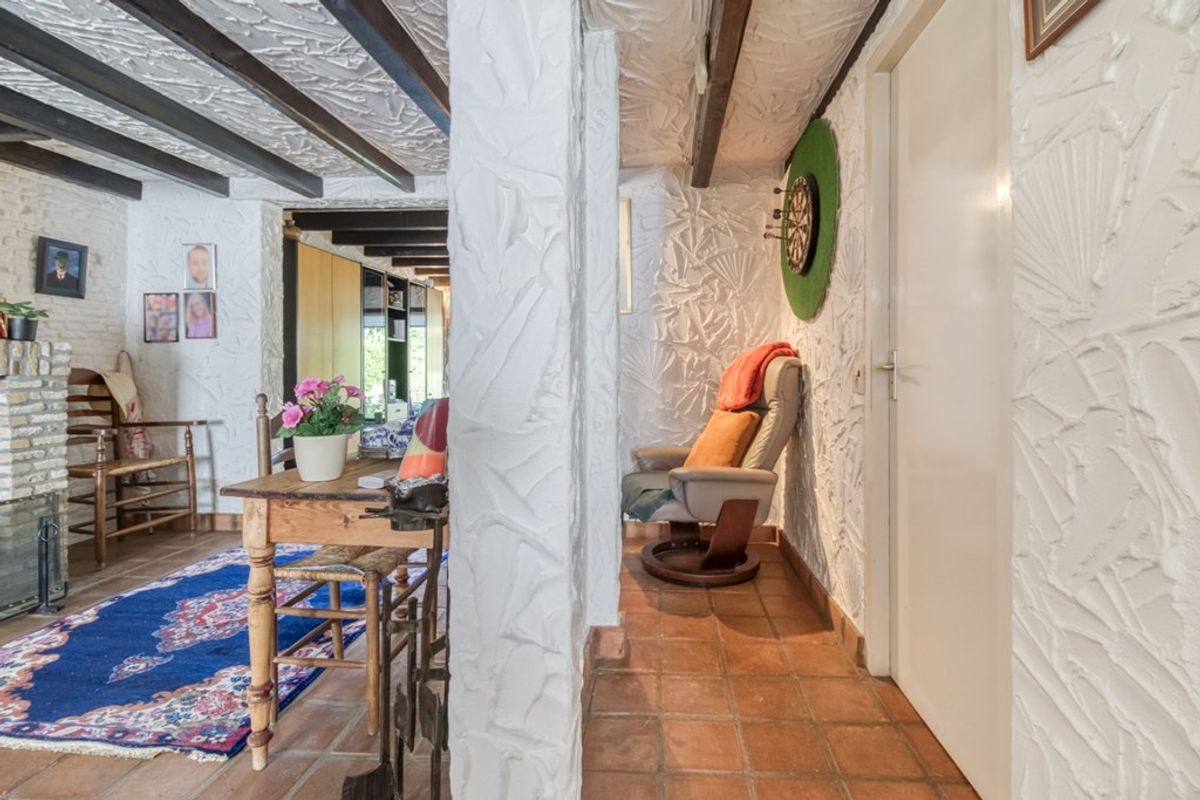 U komt binnen in een grote hal waar zich een bar/balie bevindt (het is vroeger een kruidenierswinkel geweest) Via deze ruimte komt u in de woonruimte. De woonkamer bestaat uit een zitkamer aan de voorkant met schouw, een tussenruimte en het keukengedeelte. In het keukengedeelte is er plaats voor een grote eettafel, is er een deur naar de tuin en een keuken met barretje. De keuken bestaat uit een 4-pits elektrische kookplaat, afzuigkap, oven, vaatwasmachine en koelkast. De op de begane grond gelegen badkamer is voorzien van ligbad, wastafel, toilet en wasmachine-aansluiting.