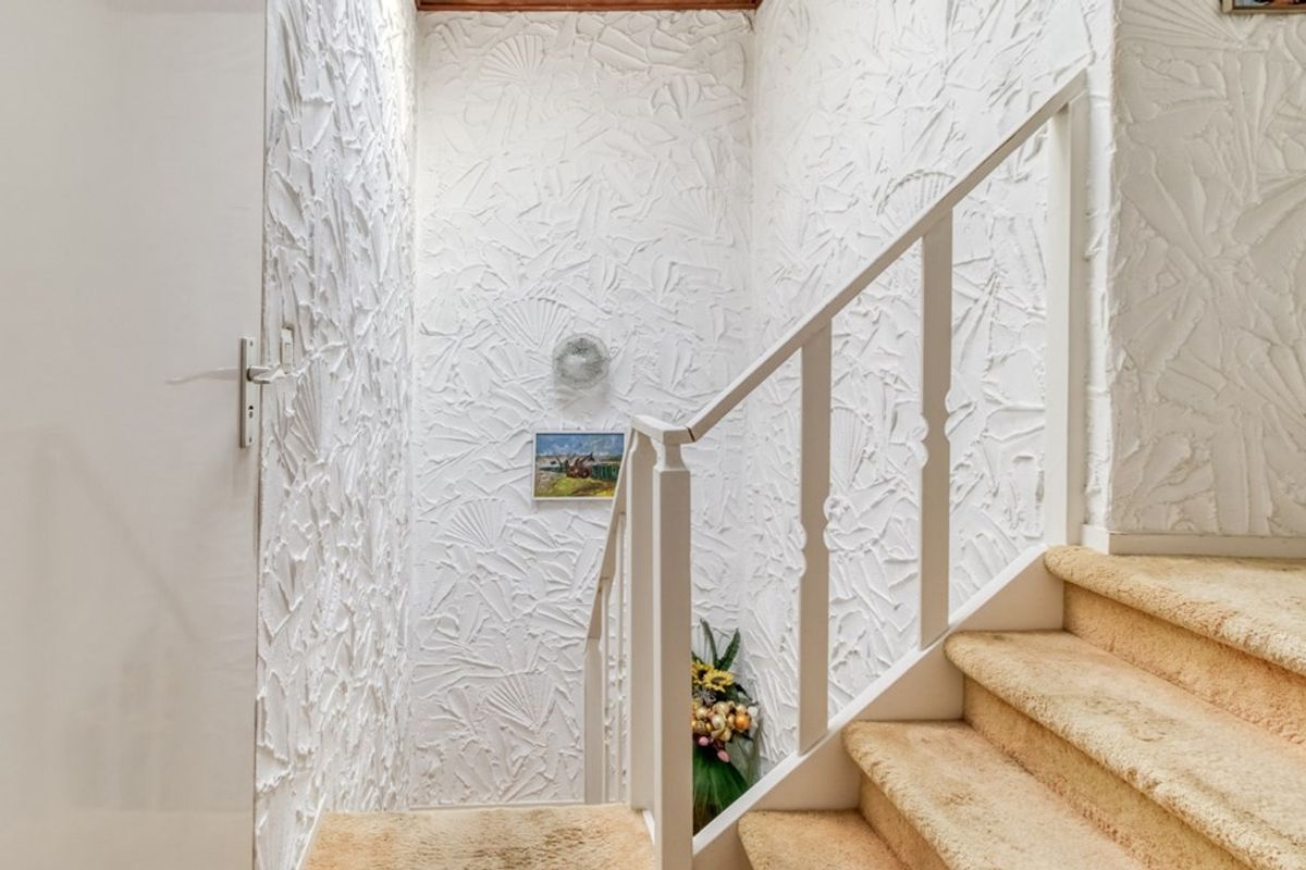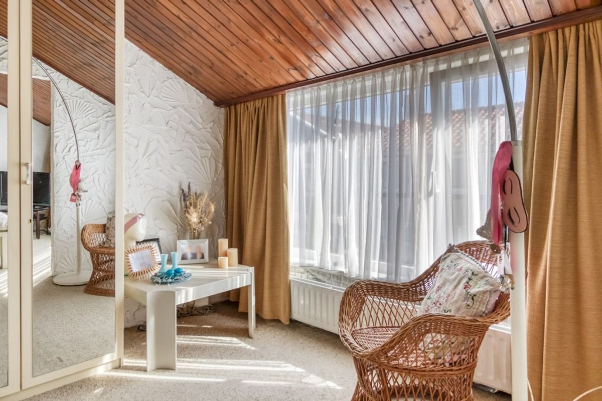 Overloop met toegang tot 2 slaapkamers. De grootste slaapkamer is aan de voorkant gelegen en is voorzien van kunststof kozijnen. Via de tweede slaapkamer en de badkamer is er toegang tot het aan het aan de achterkant gelegen dakterras. De badkamer is voorzien van een douche, wastafel en toilet.