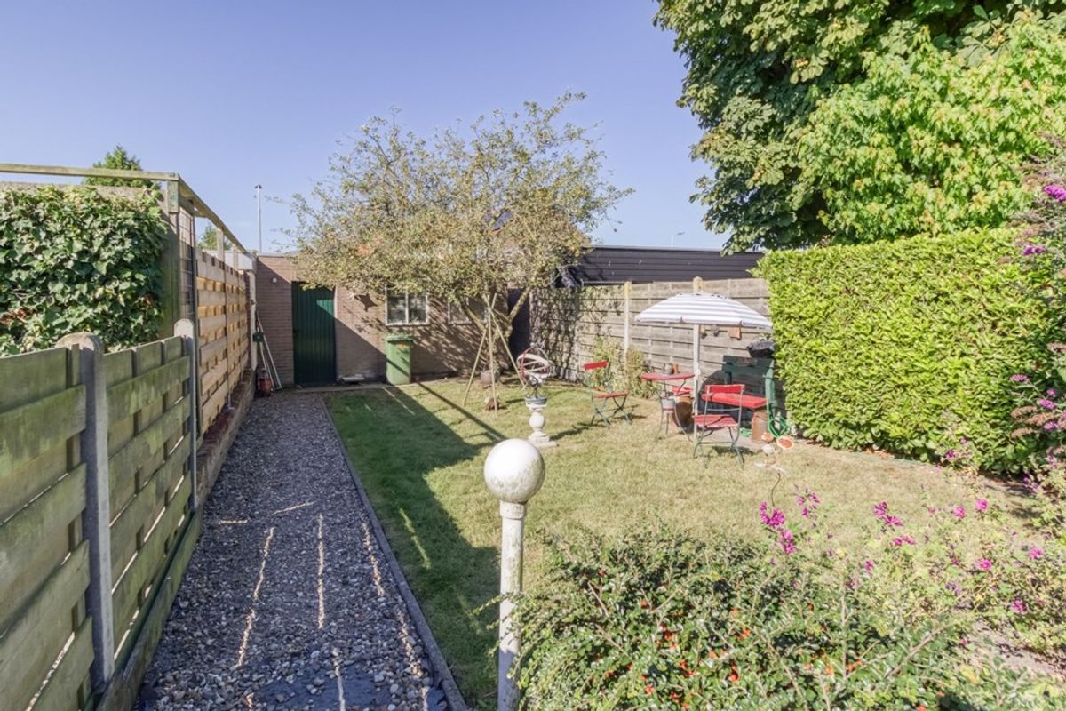 Diepe achtertuin op het zuidwesten met een ideale zonligging. De hele dag kunt u genieten van de zon in de tuin. Er is een ruim windbeschut terras, een vijver, een stuk gras en diverse bloemenperkjes. Aan de voorkant van de woning is er parkeergelegenheid in de straat.