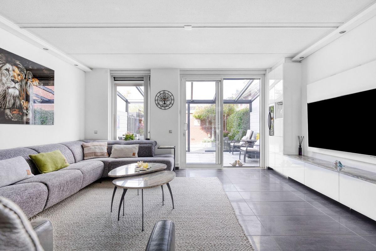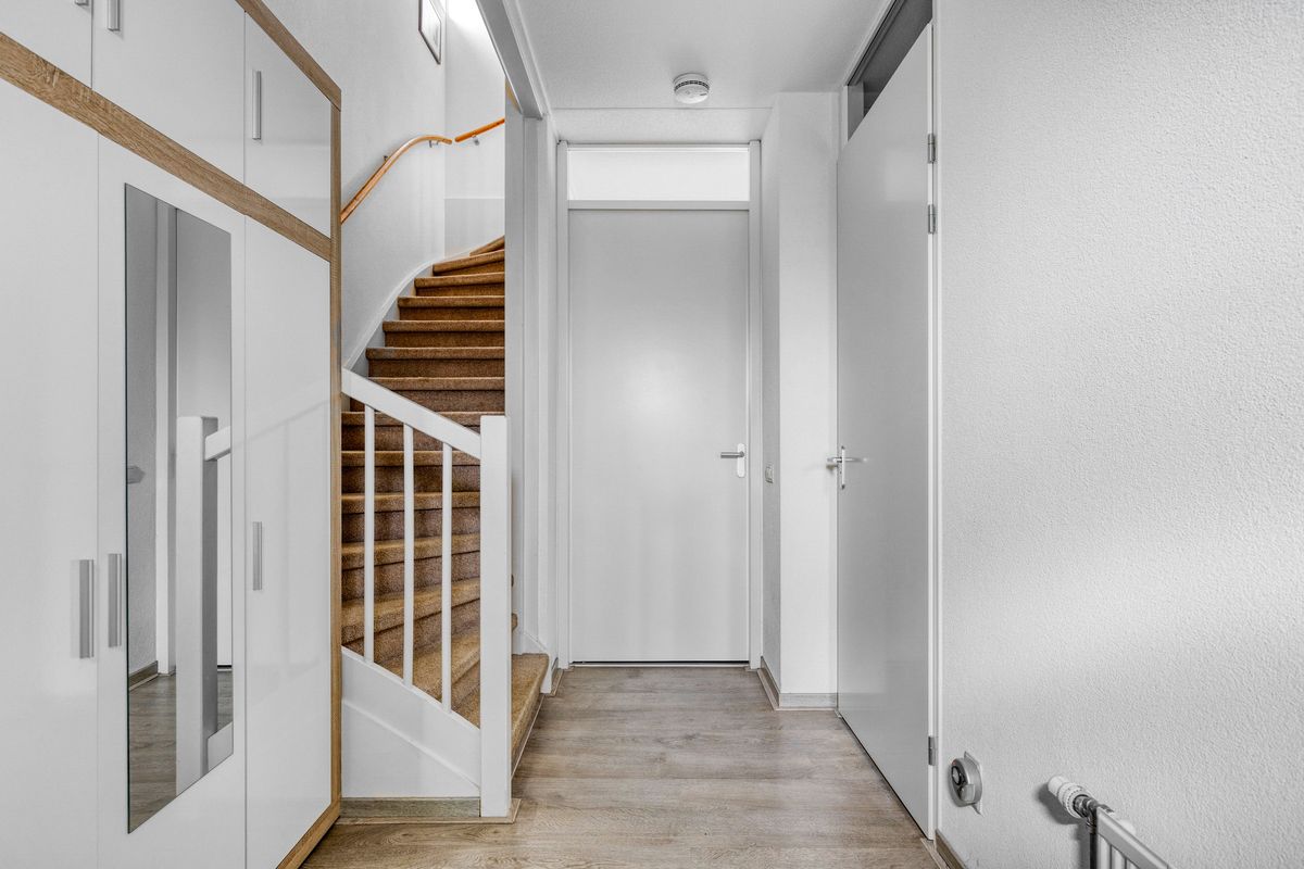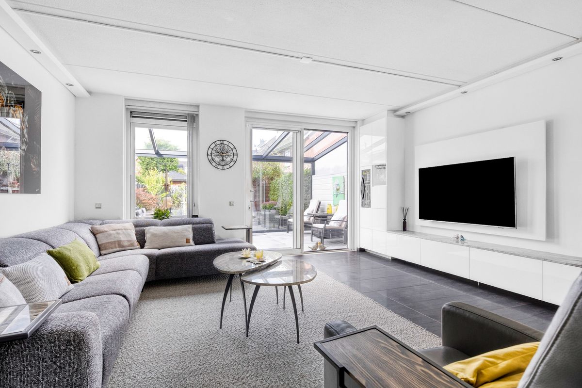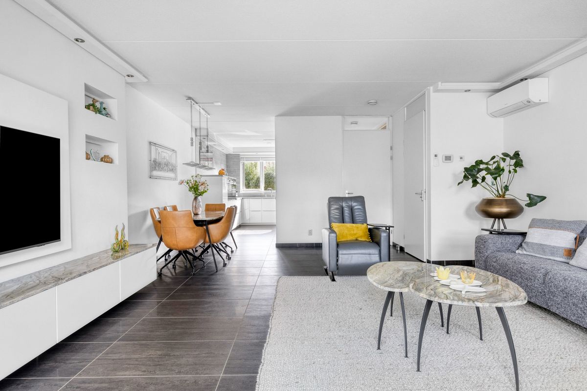 Entree met hal, meterkast en modern toilet. De woonkamer is ruim opgezet en licht, voorzien van vloerverwarming en airconditioning. Aan de voorzijde ligt de open keuken met oven, vaatwasser, inductieplaat, combimagnetron, luxe afzuigkap, warmhoudlade en Quooker (bouwjaar keuken 2018). De eethoek sluit hier mooi op aan en biedt zicht op de achtertuin. Aan de achterzijde is een sfeervolle serre toegevoegd, perfect als verlengstuk van de woonkamer.