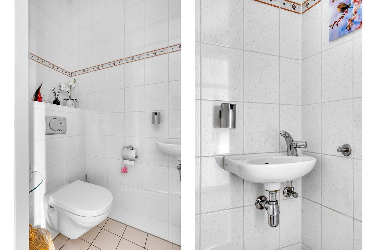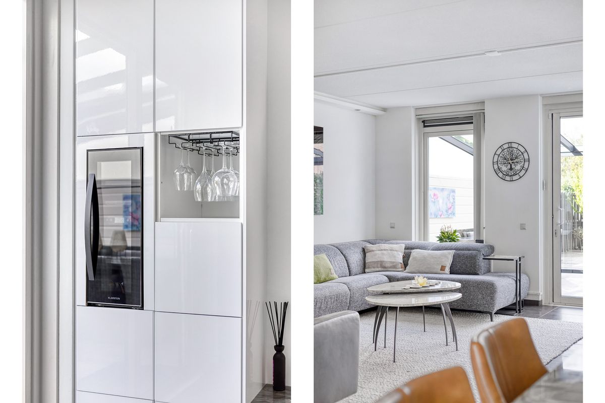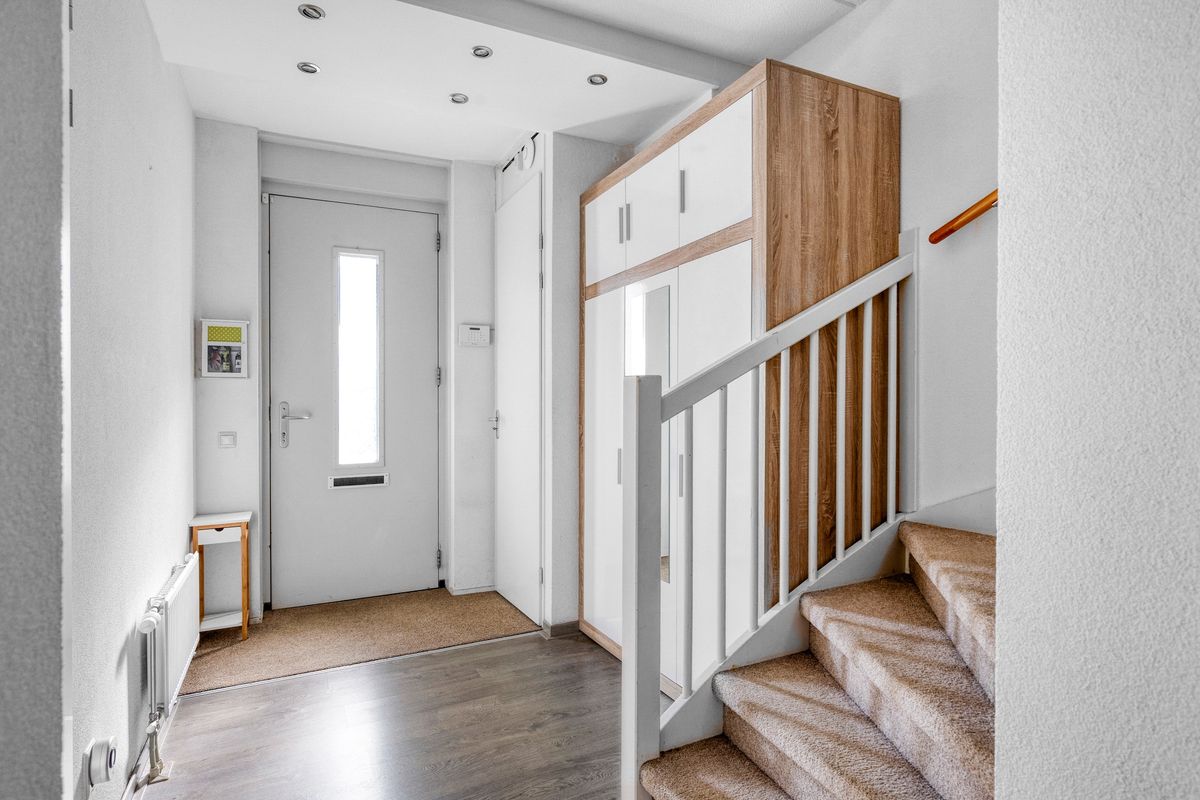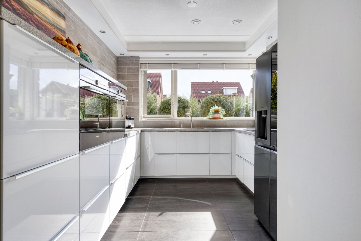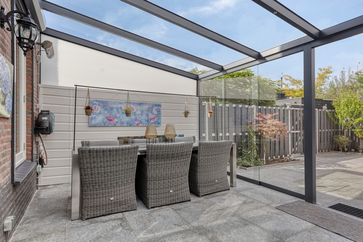Entree met hal, meterkast en modern toilet. De woonkamer is ruim opgezet en licht, voorzien van vloerverwarming en airconditioning. Aan de voorzijde ligt de open keuken met oven, vaatwasser, inductieplaat, combimagnetron, luxe afzuigkap, warmhoudlade en Quooker (bouwjaar keuken 2018). De eethoek sluit hier mooi op aan en biedt zicht op de achtertuin. Aan de achterzijde is een sfeervolle serre toegevoegd, perfect als verlengstuk van de woonkamer.