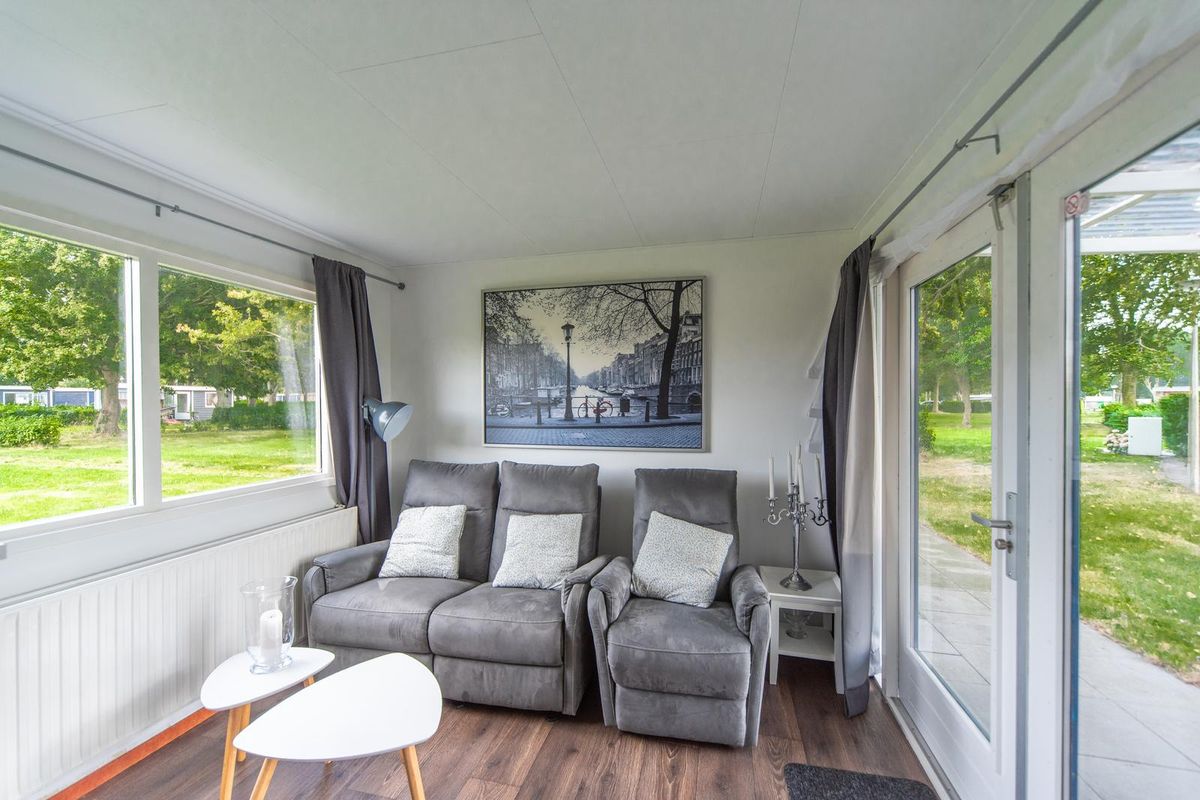 De huidige bewoners laten het chalet zoals gezegd volledig gemeubileerd achter, dus ook het recent gekochte bankstel en de stoel die beide voorzien zijn van elektrisch ingebouwde voetensteun blijven net als de TV en sierhaard gewoon achter in de woonkamer die zeker voor een chalet, mooi van formaat is. De woonkamer heeft ook nog 2 openslaande deuren naar het overdekte zonneterras, waar u ook heerlijk kunt vertoeven aan de kunststof tuin set of languit onderuit kunt op de lounge set die aanwezig is.