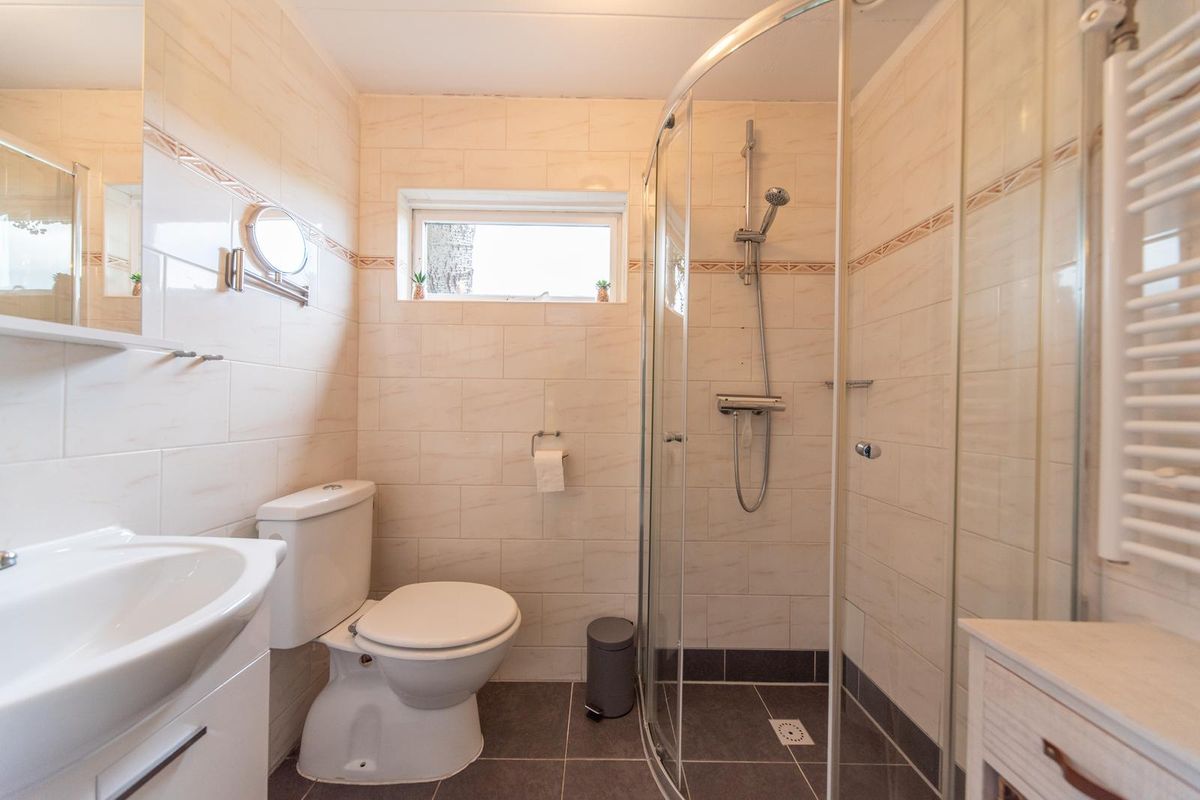 De keuken is van alle gemakken voorzien zoals een (compacte) vaatwasser, gaskookplaat, afzuigkap, oven en zelfs aan de klein huishoudelijke apparaten is gedacht. Zo vindt u hier onder meer een koffiezetapparaat, waterkoker en broodrooster. De keuken is uitgevoerd in een tijdloze witte kleur die nog jaren mee kan. Op de vloer zien we een contrasterende donkere houten laminaatvloer die prima onderhouden is en makkelijk schoon te maken is.