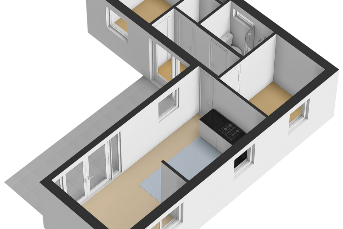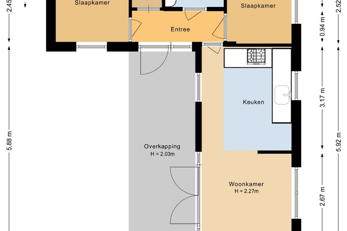 Als we binnenkomen in de hal valt gelijk het natuurlijke zonlicht op wat door het grote raam naast de voordeur naar binnenkomt. De centraal gelegen hal biedt toegang tot 2 slaapkamers van verschillend formaat, waarbij er in de grote slaapkamer een 2 persoons bed met kastombouw voor u klaar staat waar u nog de nodige spulletjes in kunt opbergen. De tweede slaapkamer is momenteel nagenoeg leeg, maar u zou hier prima een stapelbed in kunnen plaatsen, zodat u hier met 4 personen heerlijk kunt verblijven.