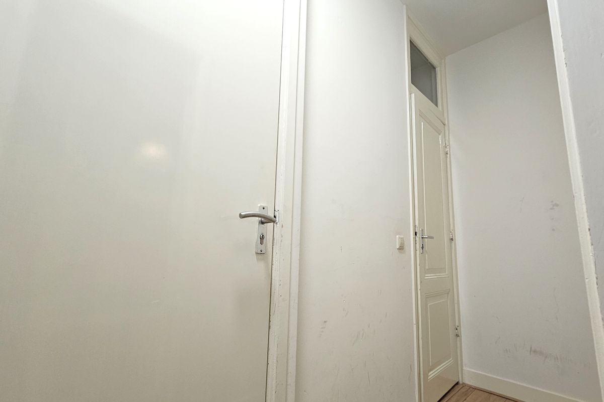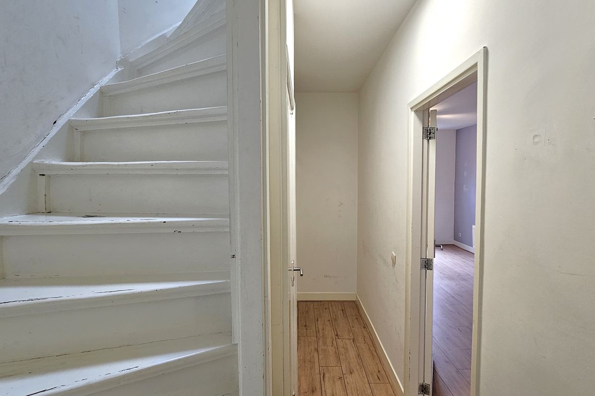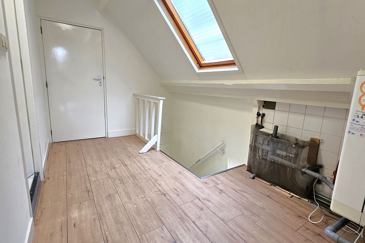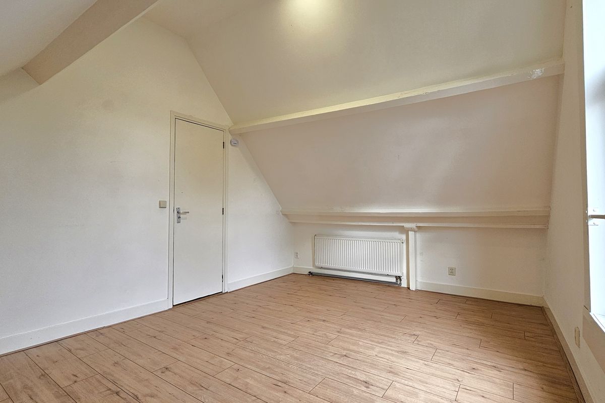 Tweede verdieping: een lichte woonkamer met hoge plafonds, een halfopen keuken (vernieuwd eind 2021) en een aangrenzende voor-(slaap)kamer. In de hal bevindt zich een separaat toilet.