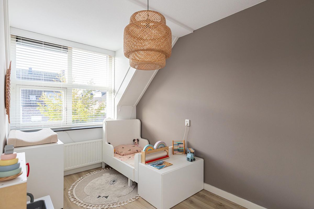 De tweede verdieping biedt nog een royale vierde slaapkamer met dakkapel en volop bergruimte. Ook de voorzolder is praktisch ingedeeld met aansluiting voor de wasmachine en extra opbergmogelijkheden.