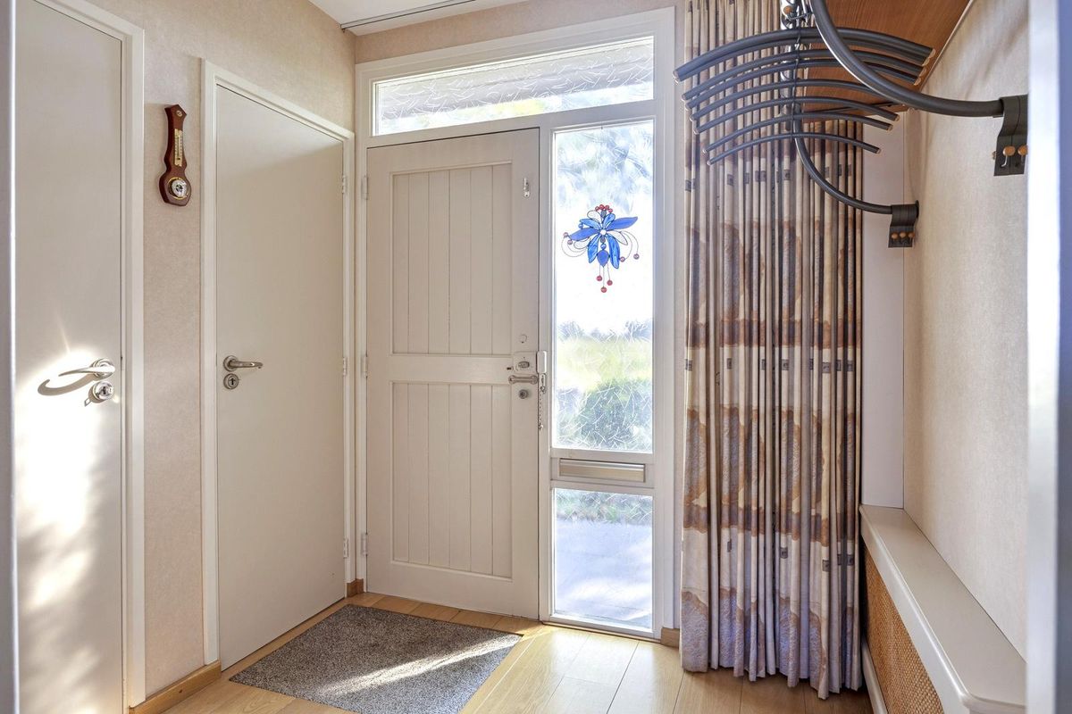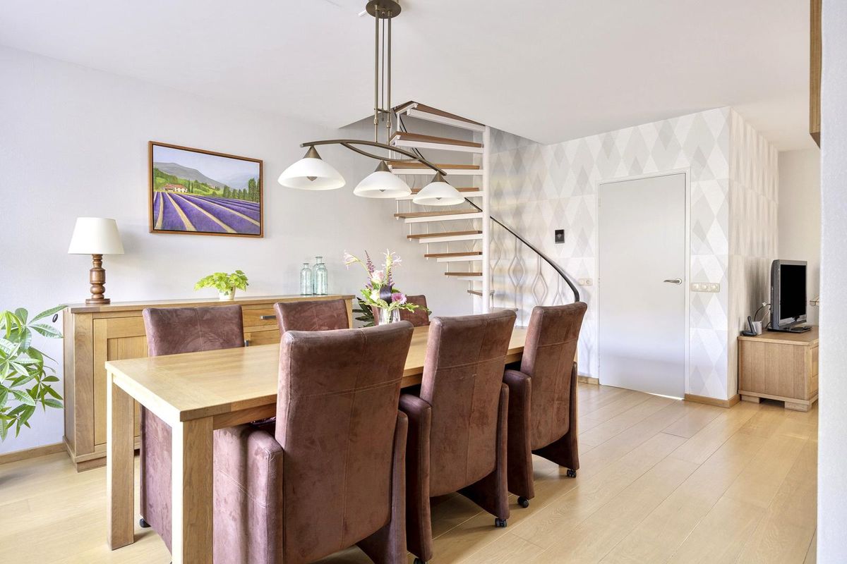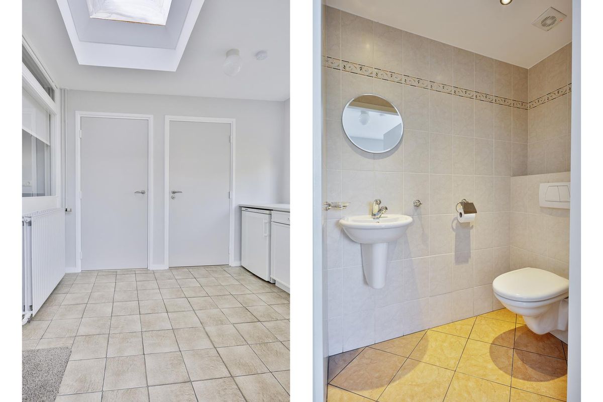 Via de voordeur kom je binnen in de hal met de meterkast en een handige provisiekast. Vanuit de hal stap je zo de royale Z-vormige woonkamer in. Dankzij de grote raampartijen geniet je hier van een fijne lichtinval en een open, sfeervolle uitstraling. Aan de voorzijde is een gezellige zithoek gecreëerd, terwijl je aan de achterzijde alle ruimte hebt voor een royale eettafel. Deze staat in directe verbinding met de aangrenzende keuken, wat zorgt voor een prettige, open leefruimte. De keuken is licht, modern en praktisch ingericht in een L-opstelling. Uiteraard is deze voorzien van diverse inbouwapparatuur. Vanuit de keuken heb je toegang tot de achtertuin én tot de praktische bijkeuken met witgoedaansluitingen. Hier bevindt zich ook een keurig afgewerkte toiletruimte met zwevend toilet en fonteintje. De hal, woonkamer en keuken zijn allemaal voorzien van een stijlvolle eiken parketvloer, die zorgt voor een warme en verzorgde uitstraling. Via de keuken bereik je bovendien de ruime, inpandige berging. Deze is voorzien van een keukenblokje en kan eenvoudig dienst doen als berging, hobbyruimte of garage.