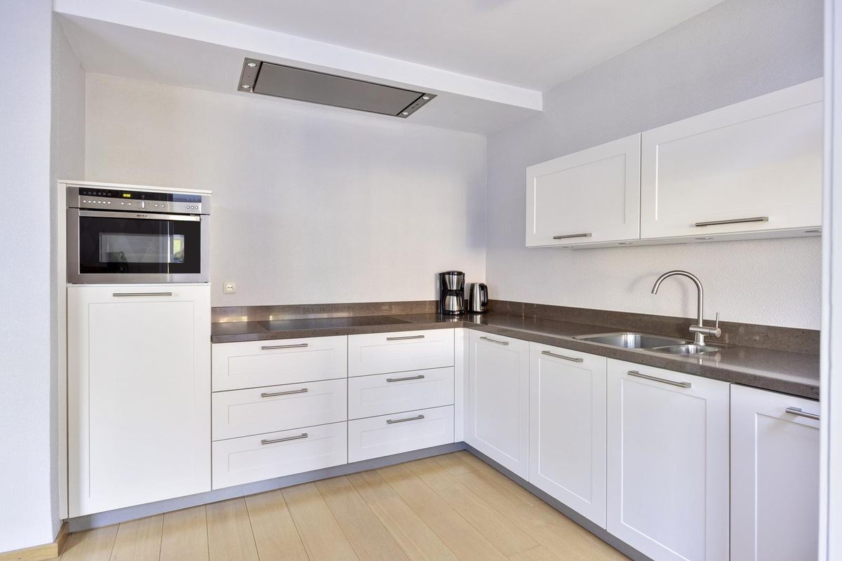 - De keuken beschikt over de volgende inbouwapparatuur: inductie-kookplaat, afzuigkap,