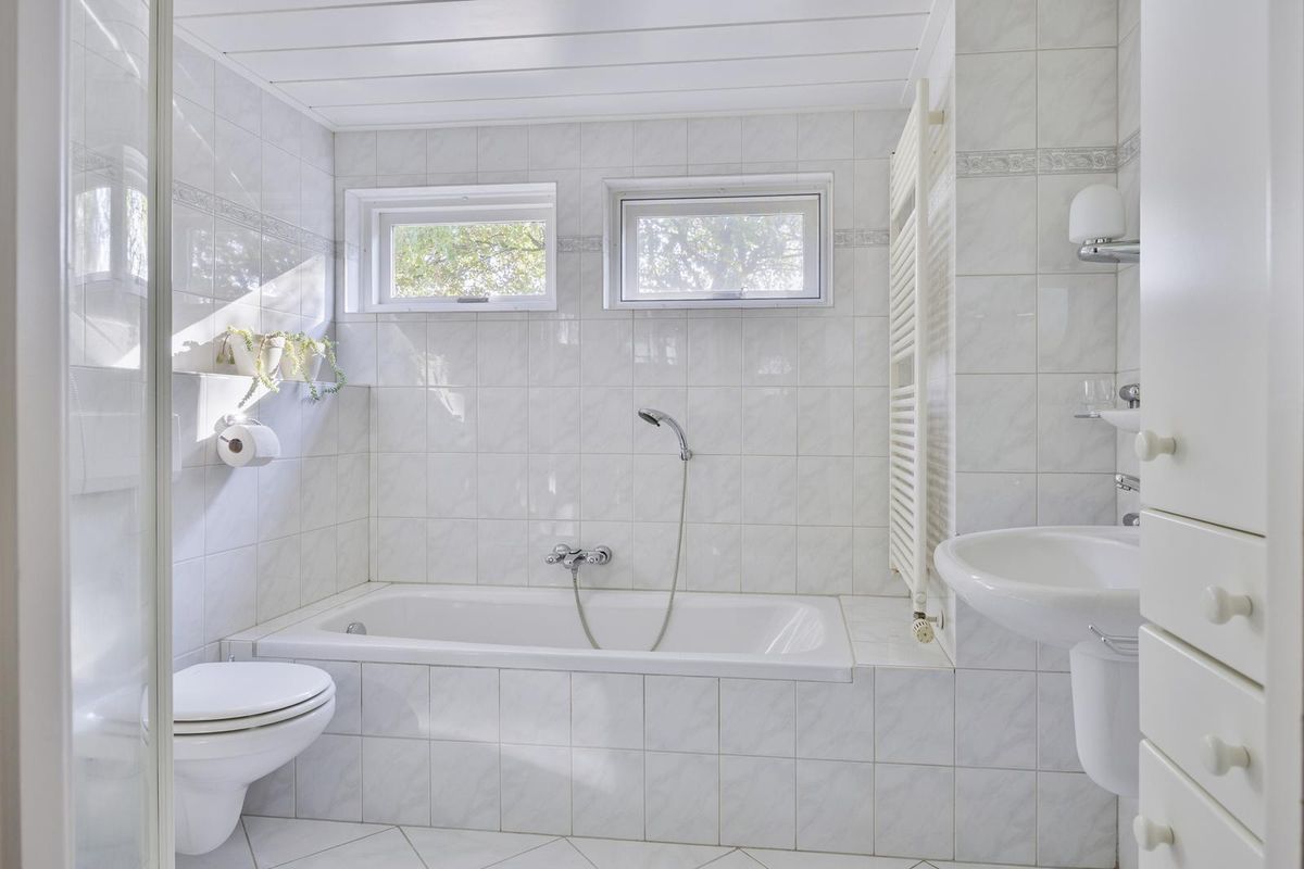 Via de vaste trap in de woonkamer is de eerste verdieping bereikbaar. Hier bevinden zich een overloop, drie ruime slaapkamers en een badkamer. De badkamer is compleet uitgerust met een douchecabine, een ligbad, een wastafel en een toilet. Eén van de slaapkamers beschikt over een inbouwschuifkast.
