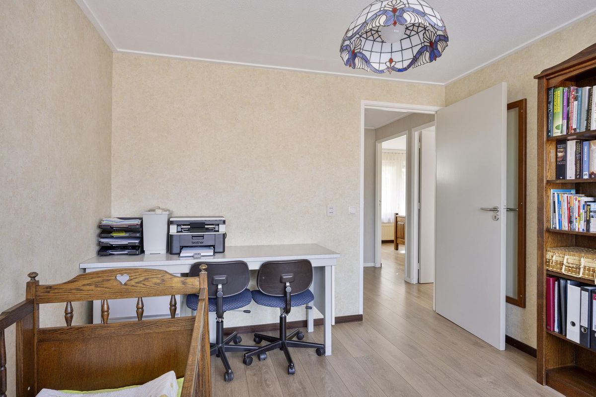 Via een vaste trap is de ruime voorzolder bereikbaar. De voorzolder beschikt over de cv-opstelling. Dankzij het dakraam is ook deze ruimte aangenaam licht. Daarnaast vind je hier een vaste kast én toegang tot een afsluitbare bergruimte een dakraam en een vaste kast. Vanuit de voorzolder loop je door naar de vierde, ruime slaapkamer. Deze kamer beschikt over praktische bergkasten onder het schuine dak en een dakraam dat zorgt voor veel natuurlijk licht.