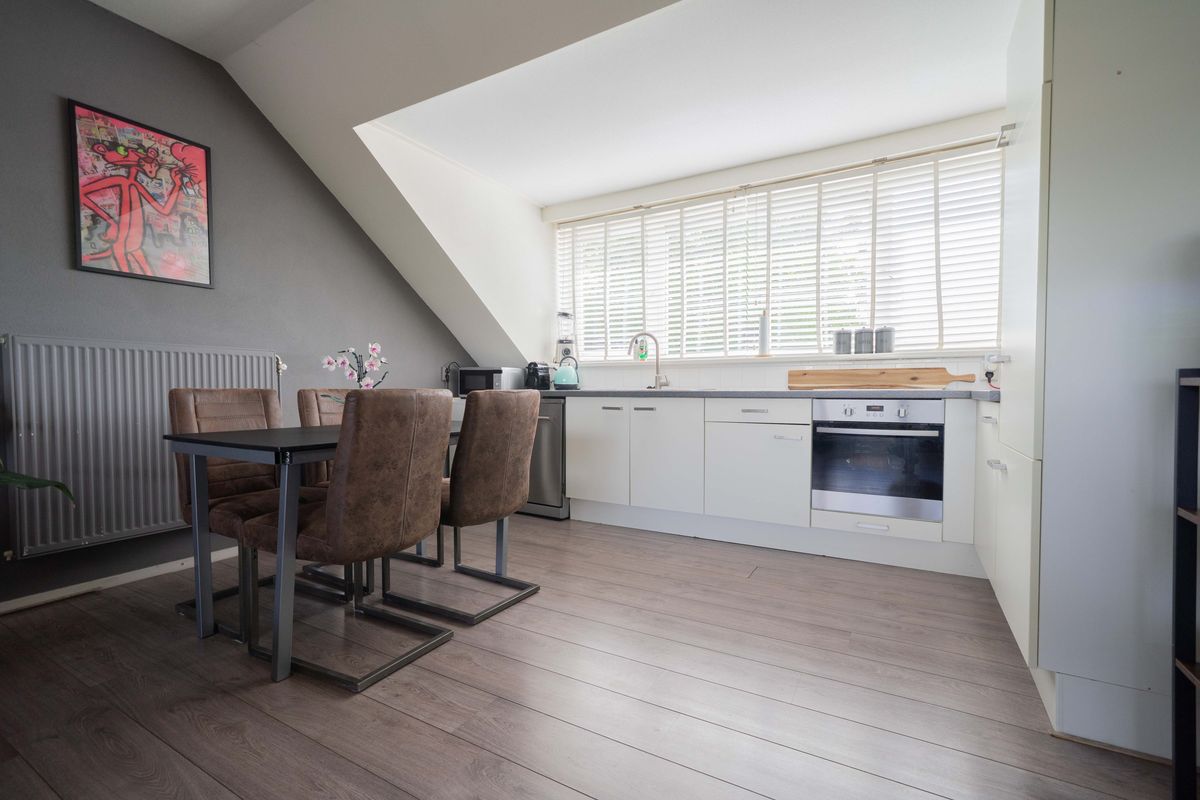 Bij binnenkomst valt direct de prettige lichtinval op, dankzij de grote raampartijen in de woonkamer. De open keuken sluit mooi aan bij het zitgedeelte, wat zorgt voor een fijne, open sfeer. De gehele ruimte is afgewerkt met een nette laminaatvloer, wat bijdraagt aan het verzorgde karakter van het appartement. De twee slaapkamers zijn praktisch ingedeeld en bieden volop mogelijkheden, bijvoorbeeld als slaap-, werk- of hobbykamer.
