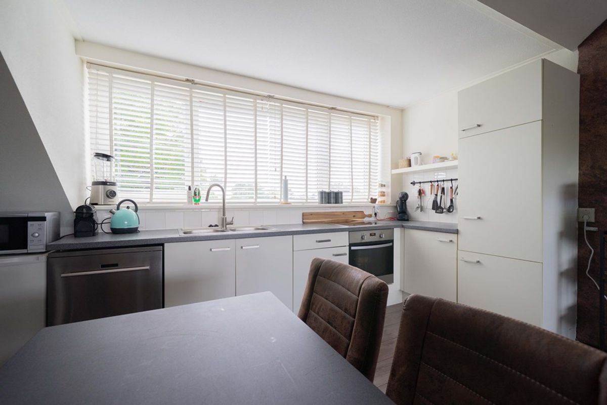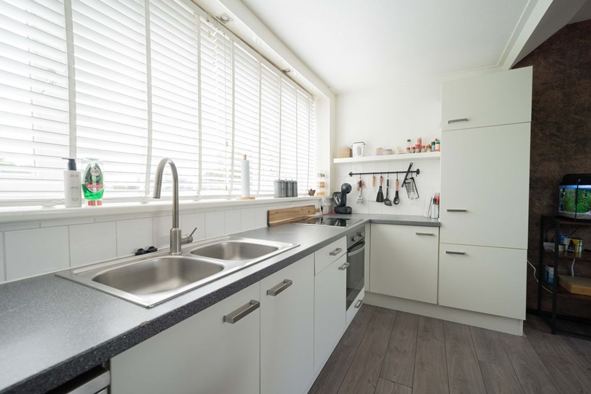 Bij binnenkomst valt direct de prettige lichtinval op, dankzij de grote raampartijen in de woonkamer. De open keuken sluit mooi aan bij het zitgedeelte, wat zorgt voor een fijne, open sfeer. De gehele ruimte is afgewerkt met een nette laminaatvloer, wat bijdraagt aan het verzorgde karakter van het appartement. De twee slaapkamers zijn praktisch ingedeeld en bieden volop mogelijkheden, bijvoorbeeld als slaap-, werk- of hobbykamer.