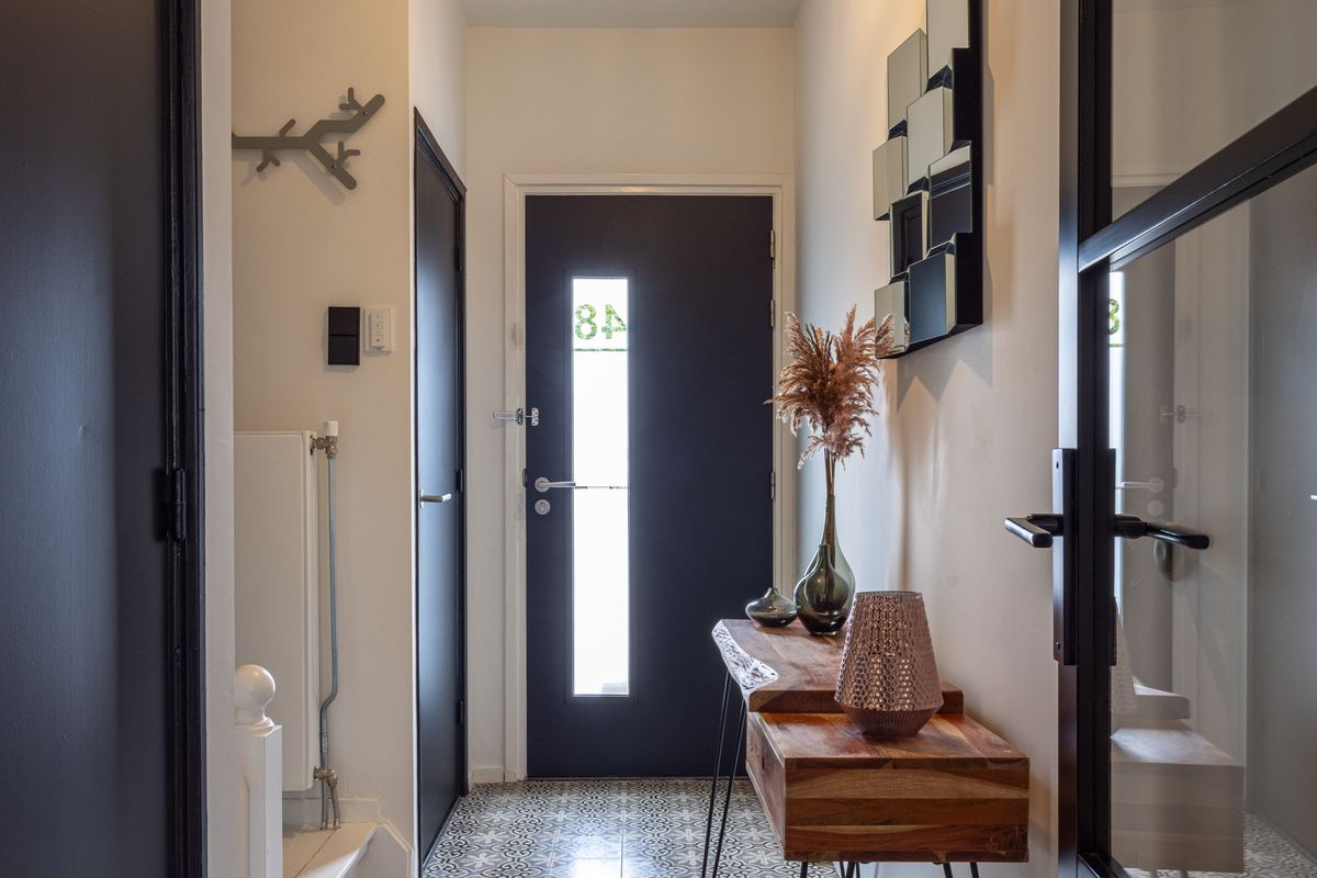 Bij aankomst valt direct de verzorgde, onderhoudsvriendelijke voortuin op, met een eigen oprit voor één auto. De entree heeft een sfeervolle Portugese Azule-tegelvloer, garderobe en een modern toilet met fonteintje. Vanuit de hal heeft u toegang tot de provisiekelder, ideaal als extra bergruimte.