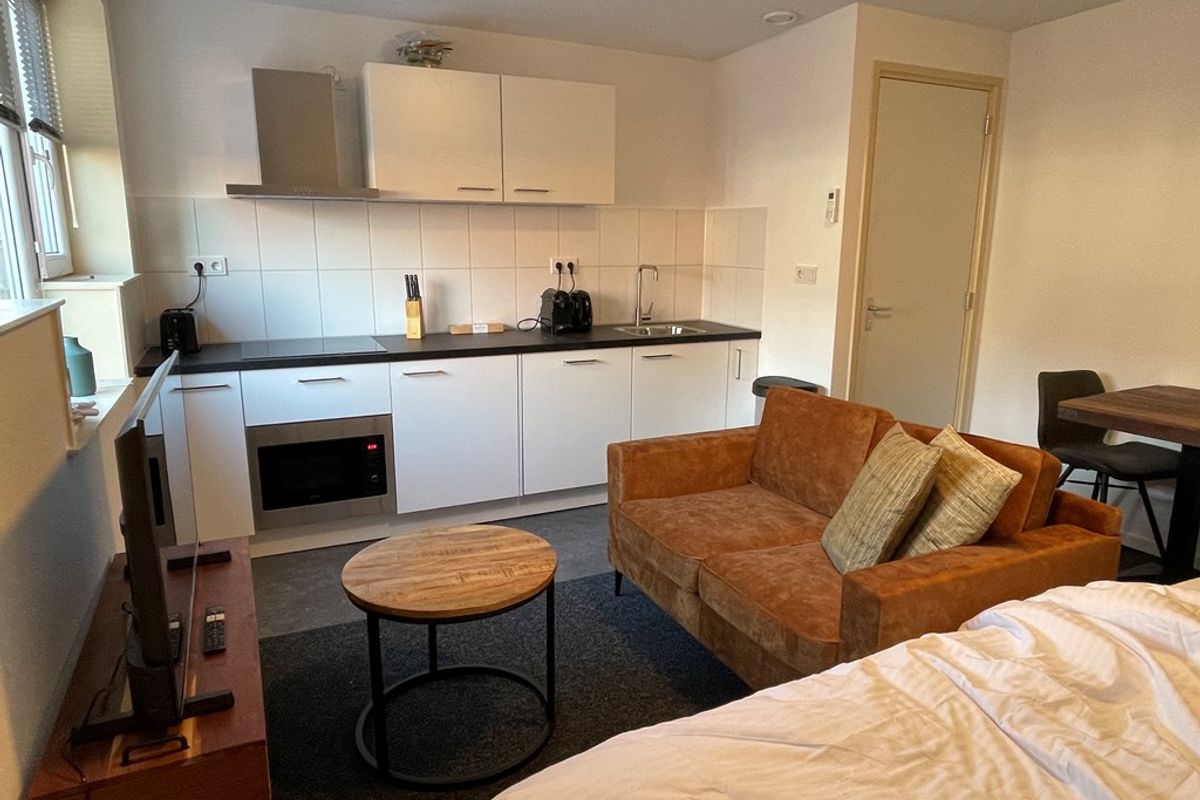 Raamstraat 8-C (Photos 8–12) is located on the first floor and has a living area of approximately 30 m². The living/sleeping area has an open kitchen equipped with a refrigerator, induction hob, combi oven/microwave, dishwasher and extractor hood. The bathroom is equipped with a shower, toilet and sink. In addition, the studio has a separate bedroom.