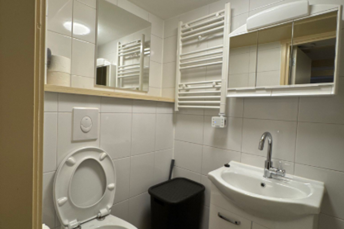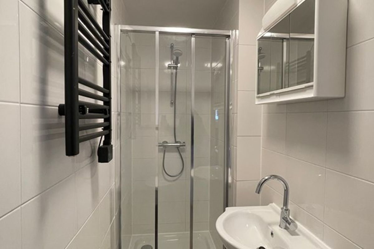 Raamstraat 8-E (Photos 2–7) is located on the second floor and has a living area of approximately 25 m². The living/sleeping area has an open kitchen equipped with a refrigerator, induction hob, combi oven/microwave, dishwasher and extractor hood. The bathroom is equipped with a shower, toilet and sink.