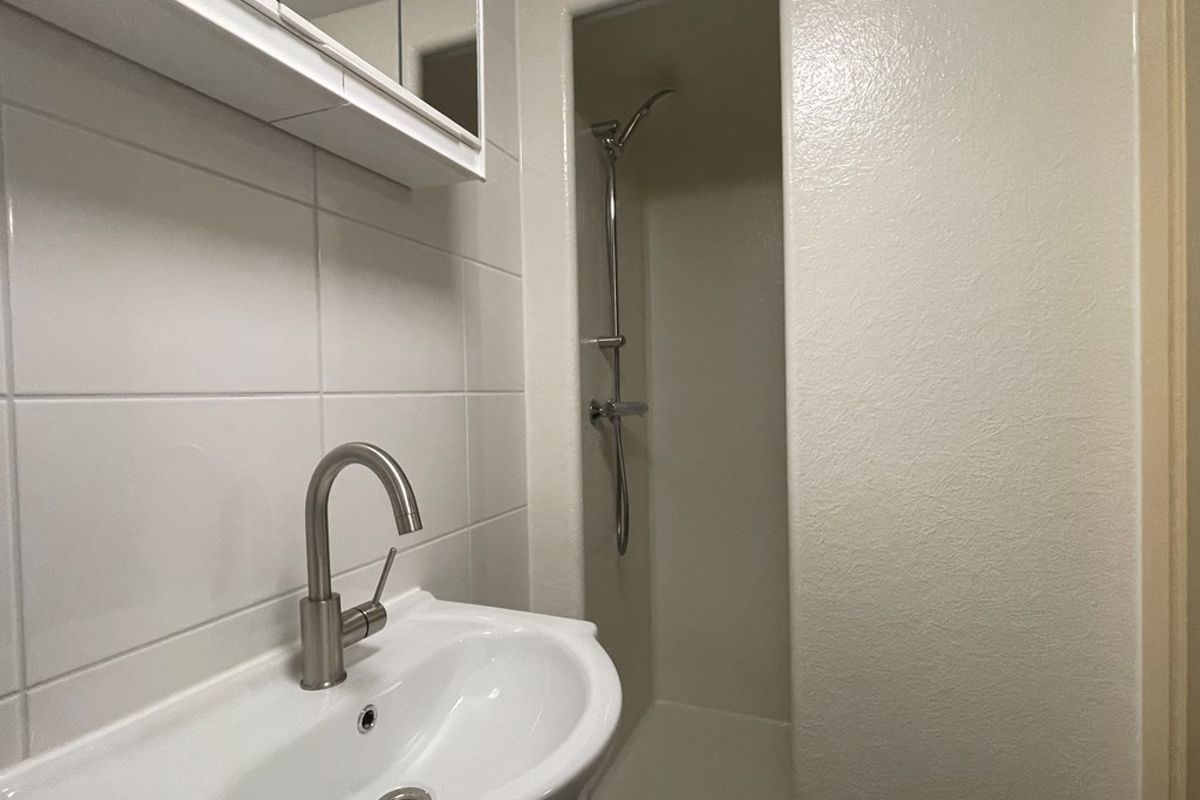 Raamstraat 8-G (Photos 13–16) is located on the third floor and has a living area of approximately 21 m². The living/sleeping area has an open kitchen equipped with a refrigerator, induction hob, combi oven/microwave, dishwasher and extractor hood. The bathroom is equipped with a shower, toilet and sink.