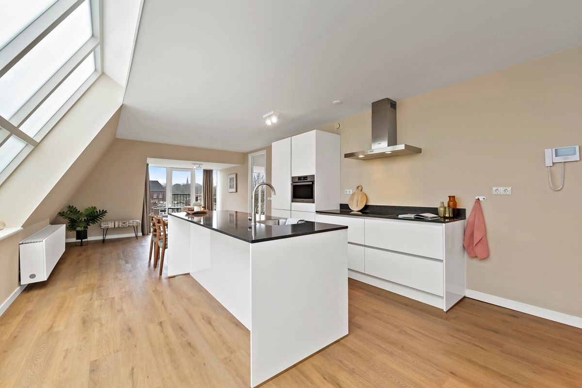 De moderne open keuken, uitgerust met hoogwaardige inbouwapparatuur, waaronder een inductiekookplaat, koel-/vriescombinatie, vaatwasser, combimagnetron en afzuigsysteem nodigt uit tot culinaire creaties. Het keukeneiland is de ideale plek om te koken, te ontbijten en gezellig samen te genieten van een drankje aan de bar.