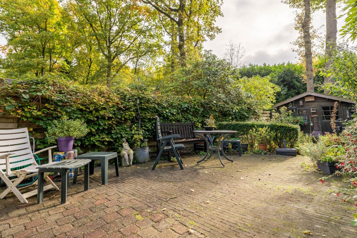 De diepe, zonnige achtertuin op het zuiden is een plek om tot rust te komen, te borrelen met vrienden of gewoon even niks te doen. Je geniet hier van een vrij uitzicht en het geluid van de vele vogels. De houten berging is ideaal voor fietsen en tuingereedschap én in de achtertuin is er eveneens een achterom.