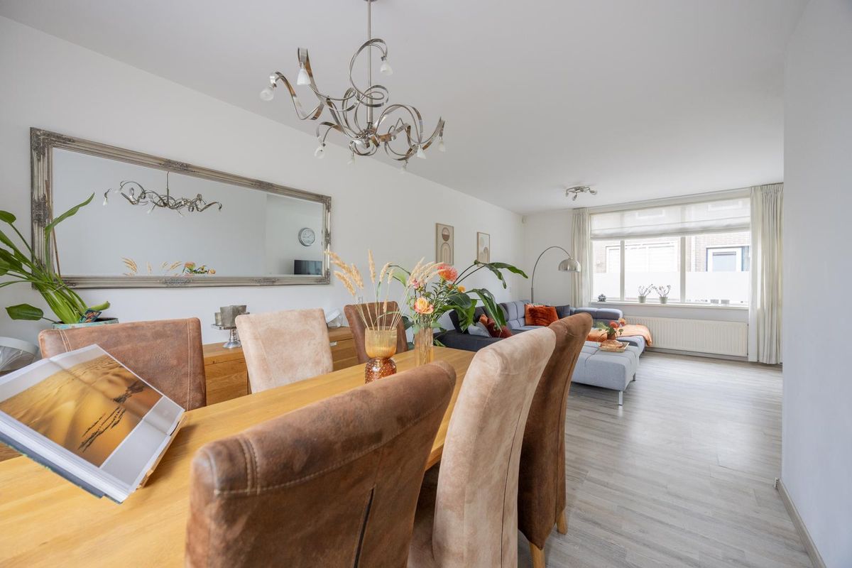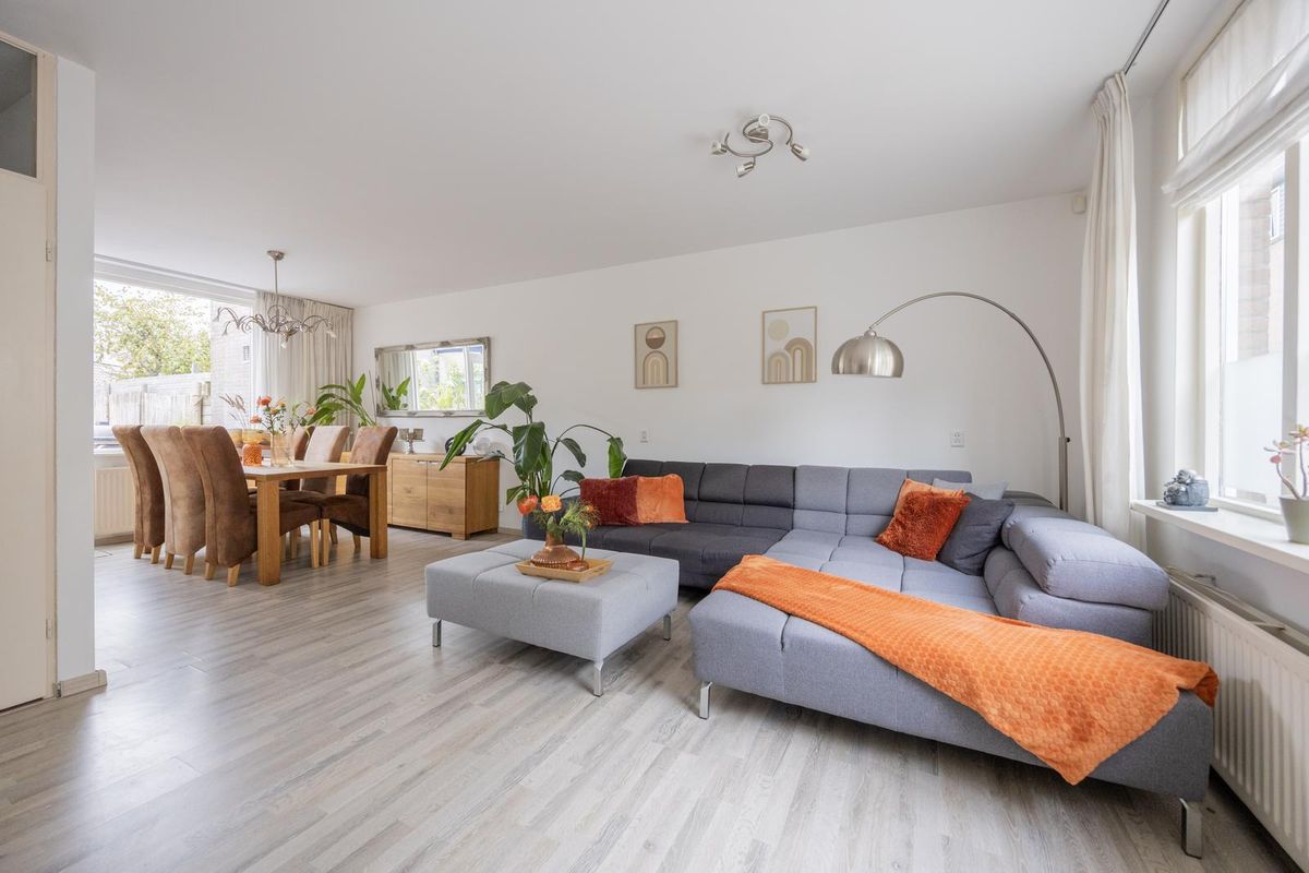De woonkamer is niet alleen verrassend ruim, maar ook heel licht dankzij de grote ramen aan de voor- en achterzijde. Het zitgedeelte, met een breedte van maar liefst 5.20 meter, is aan de voorzijde en het eetgedeelte biedt genoeg plek om een dressoir en een 6-persoonstafel neer te zetten. De afwerking van de wanden, het plafond en de vloer zorgt ervoor dat je niet hoeft te beginnen met verbouwen.