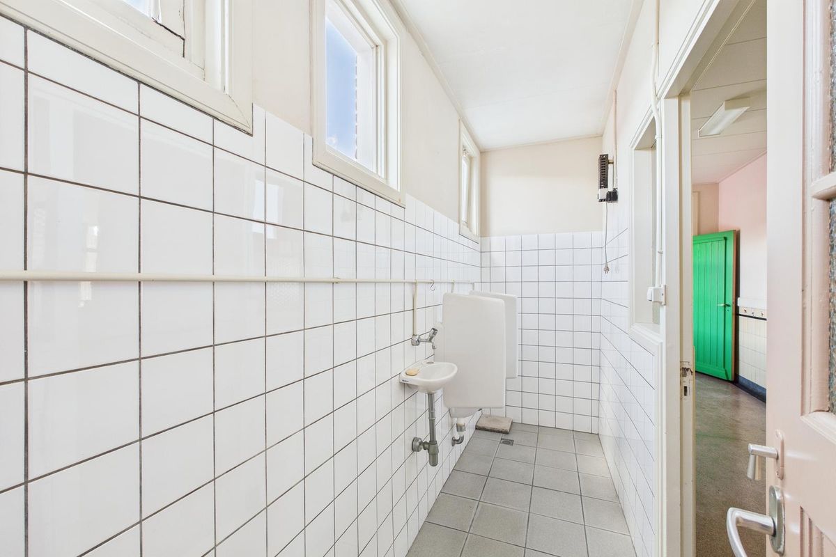 Via de brede hal, waar nog diverse authentieke details aanwezig zijn, kom je links in een royale ruimte die ook prima geschikt zou zijn als inpandige garage of hobbyruimte. Hier bevinden zich tevens een berging en een toiletruimte (voorheen invalidetoilet).