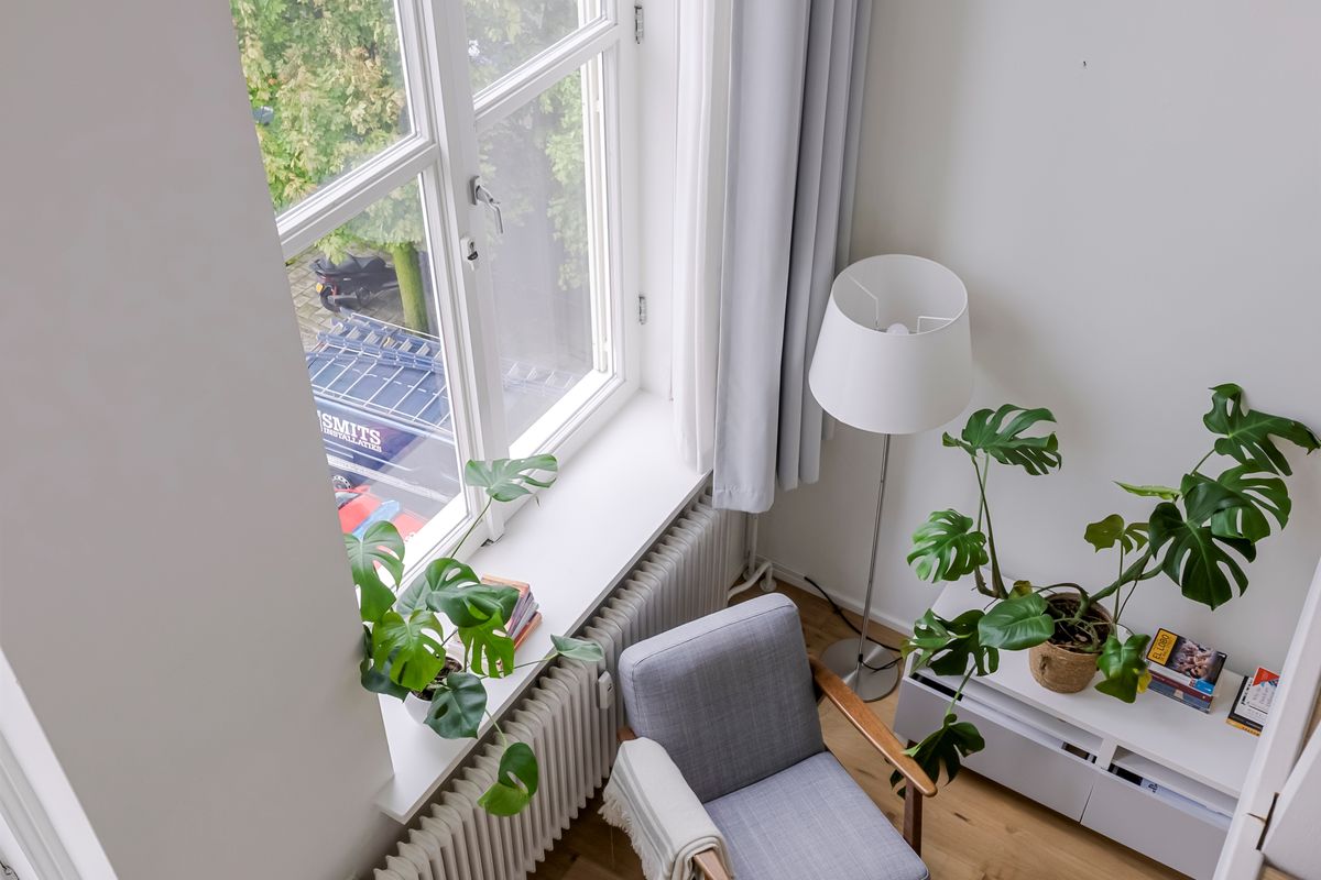 Charming and light-filled maisonette (50 m2) with spectacular windows. Just around the corner from the lively Rapenburgerplein, Entrepotdok and Nieuwe Herengracht. This top-floor, one bedroom apartment is situated in a well-maintained complex with a lift, private storage and a bicycle parking in the basement. Right above the apartment is a spectacular, large and well-kept communal roof terrace, offering breathtaking views of the historic city centre. The perpetual ground lease has been redeemed, and heating costs are low. Come and discover this delightful home — we’d be happy to welcome you for a viewing.