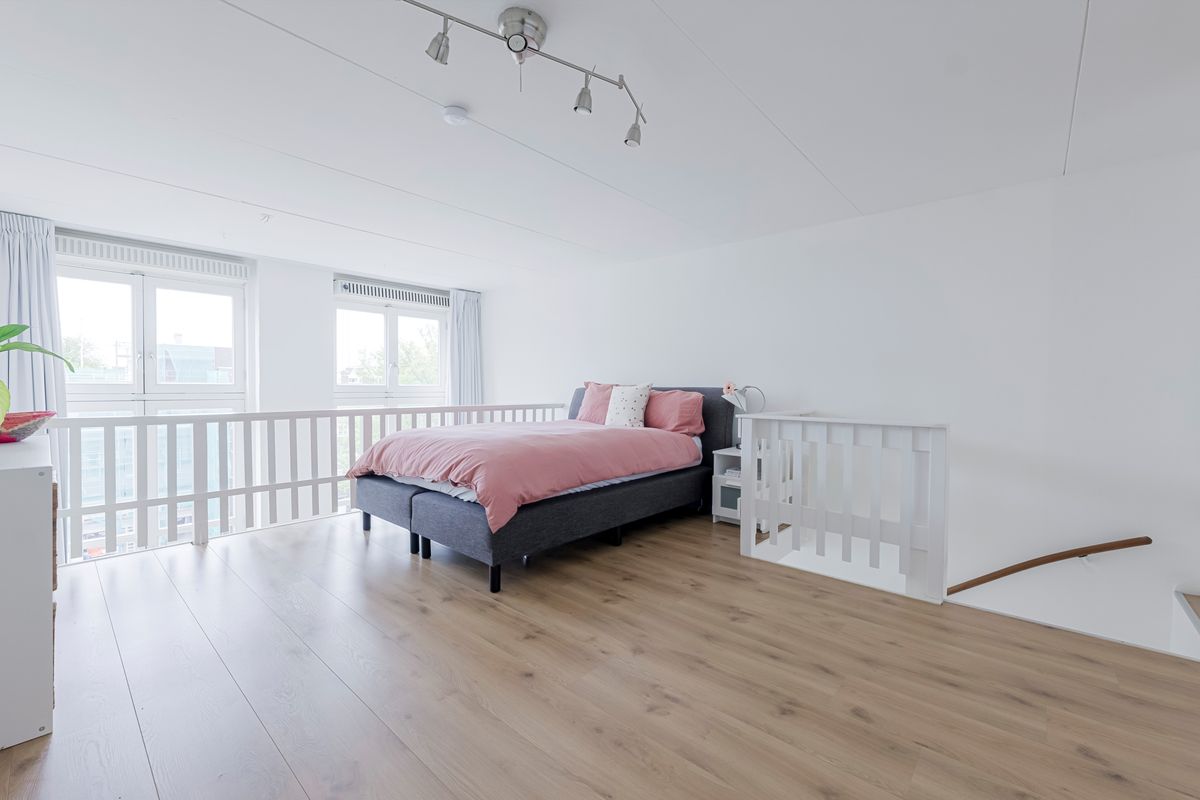 Via de vaste trap in de woonkamer bereik je de vide. Hier de ruime slaapkamer, met genoeg plek voor een tweepersoonsbed en een kastenwand. De moderne badkamer heeft een douche, wastafelmeubel met verwarmde spiegel, toilet en wasmachine/droger aansluiting.