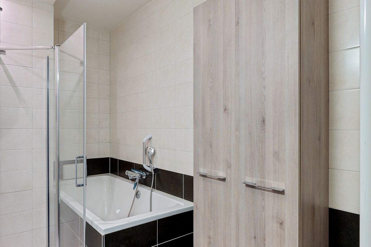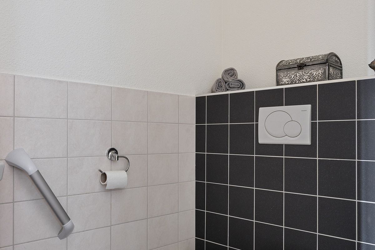 From the hallway you reach the bathroom (renovated in 2018) with walk-in shower, bathtub, washbasin with vanity unit, and mechanical ventilation. In addition, there is a large indoor storage room with washing machine connection, central heating boiler Remeha (2022), and heat recovery system.