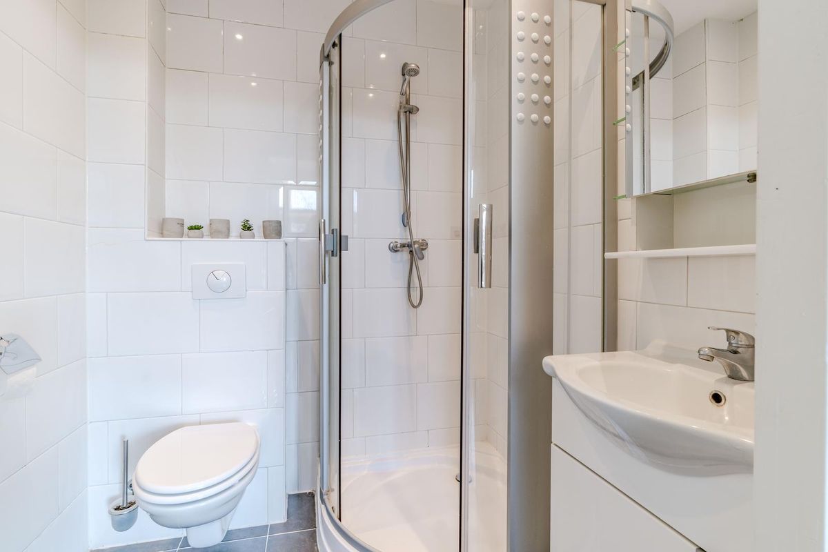 Ground floor entrance, shared entrance, stairs to the 2nd floor. Charming apartment with a bright living room and an open kitchen with various built-in appliances, and access to the lovely balcony. Bathroom with toilet, sink and shower. The bedroom is located in the front of the apartment.